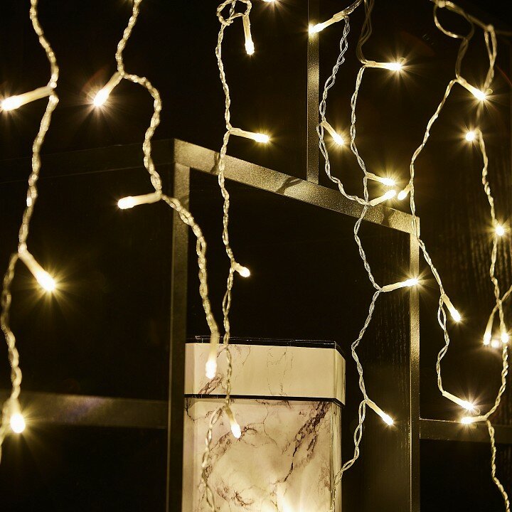 - Гирлянду можно нарастить, присоединив к другой, чтобы получить возможность украшать большие площади.