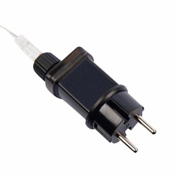 - Работает от сети. Блок питания в комплекте. Длина прозрачного шнура — 300 см.
