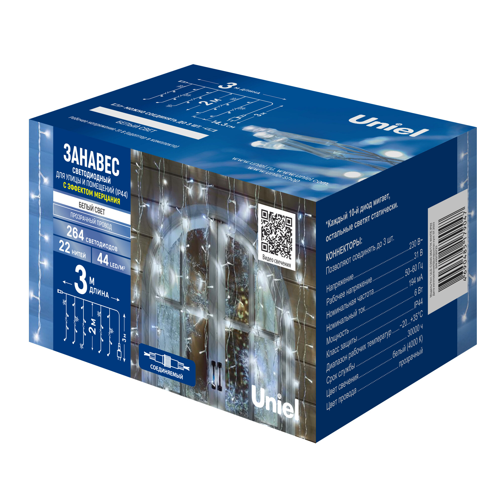 Гирлянда светодиодная занавес Uniel электрическая 3x2 м белый свет 1 режим 264 лампы цвет прозрачный