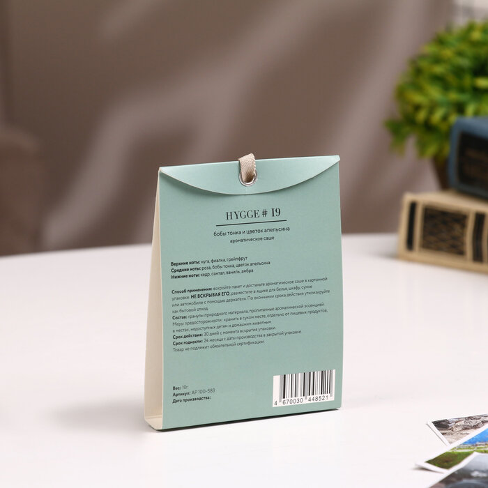 **Саше ароматическое Hygge 19 Бобы Тонка/цветок апельсина** привнесет в дом атмосферу уюта и комфорта, наполнив пространство ярким и приятным ароматом. Достаточно установить пакетик с содержимым в шкаф, ящик, на полку или на другой подходящий предмет интерьера. Способ применения максимально простой. Достаточно вскрыть пакет и вынуть ароматическое саше, которое находится в картонной упаковке. Вскрывать его не требуется. Хранить средство необходимо в сухом месте, вдали от пищевых продуктов, и в местах, которые недоступны для детей и домашних животных.