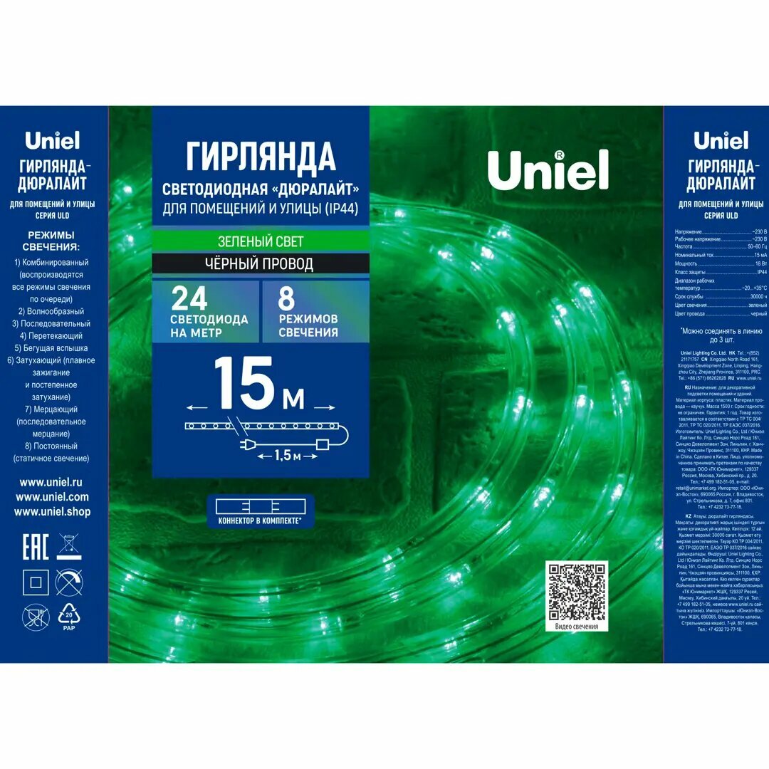 Электрогирлянда Uniel дюралайт 15 м цвет зеленый 8 режимов работы