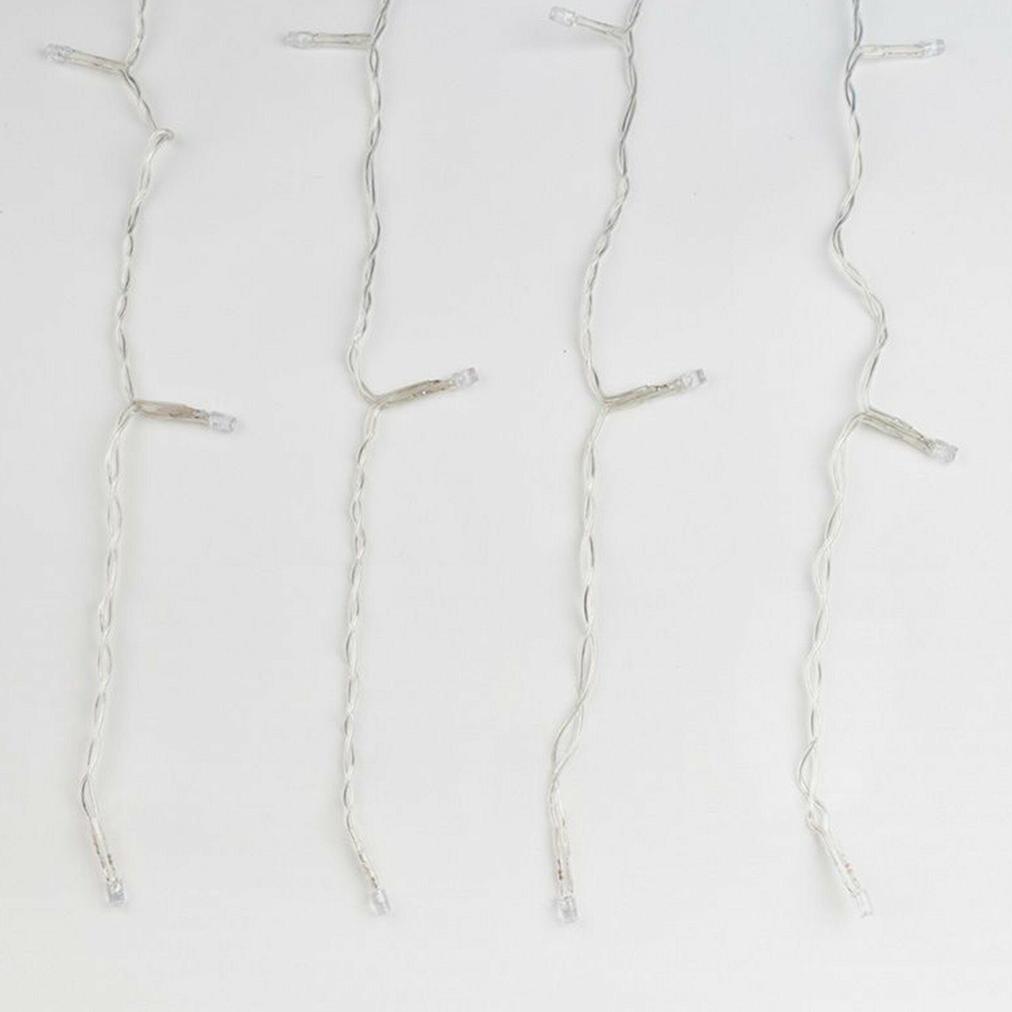 "**Гирлянда светодиодная Uniel «Занавес»** предназначена для оформления окна. Также гирлянду можно растянуть по стене или по мебельному фасаду, закрепить на потолке, визуально разделив помещение. Эффективно освещает площадь до 2,25 м². На световой части гирлянды длиной 1.5 м располагаются 10 нитей, включающие всего 100 светодиодов.