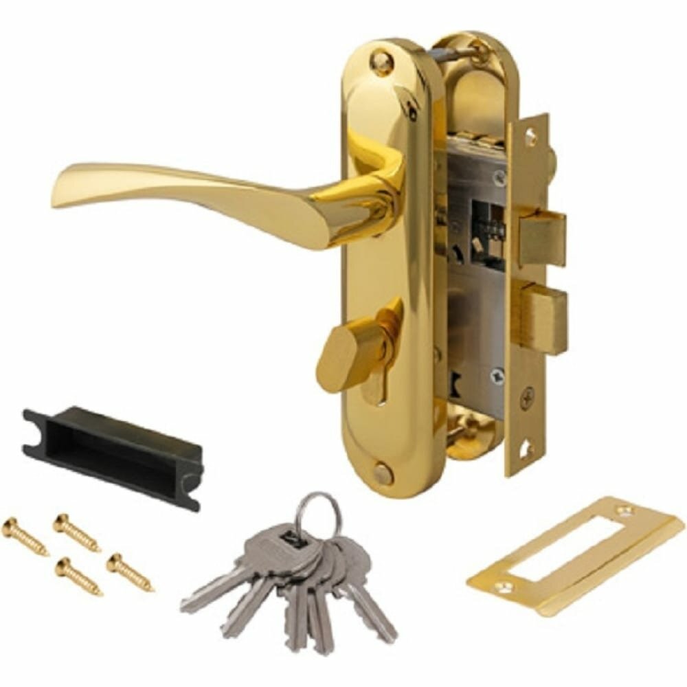 Замок врезной Avers с ручкой, золото