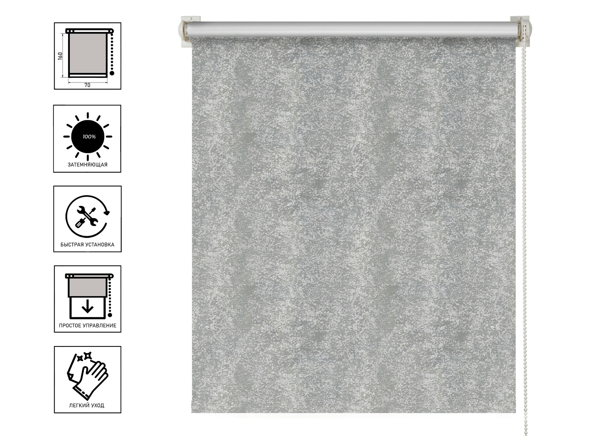 Штора рулонная блэкаут Марбл 80x160 см серая Decofest