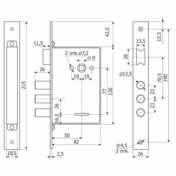 Замок врезной Гардиан 10.01 Полный комплект 4 ключа
