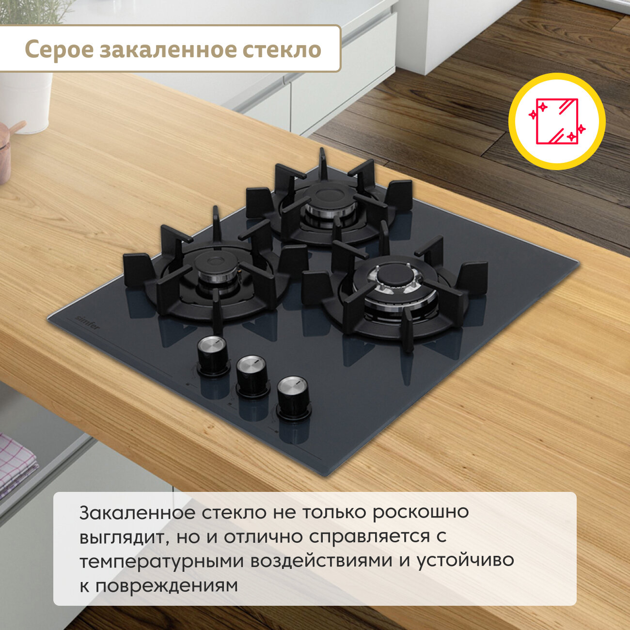 Газовая варочная поверхность Simfer H45N35G571 (газ-контроль WOK конфорка серое стекло)