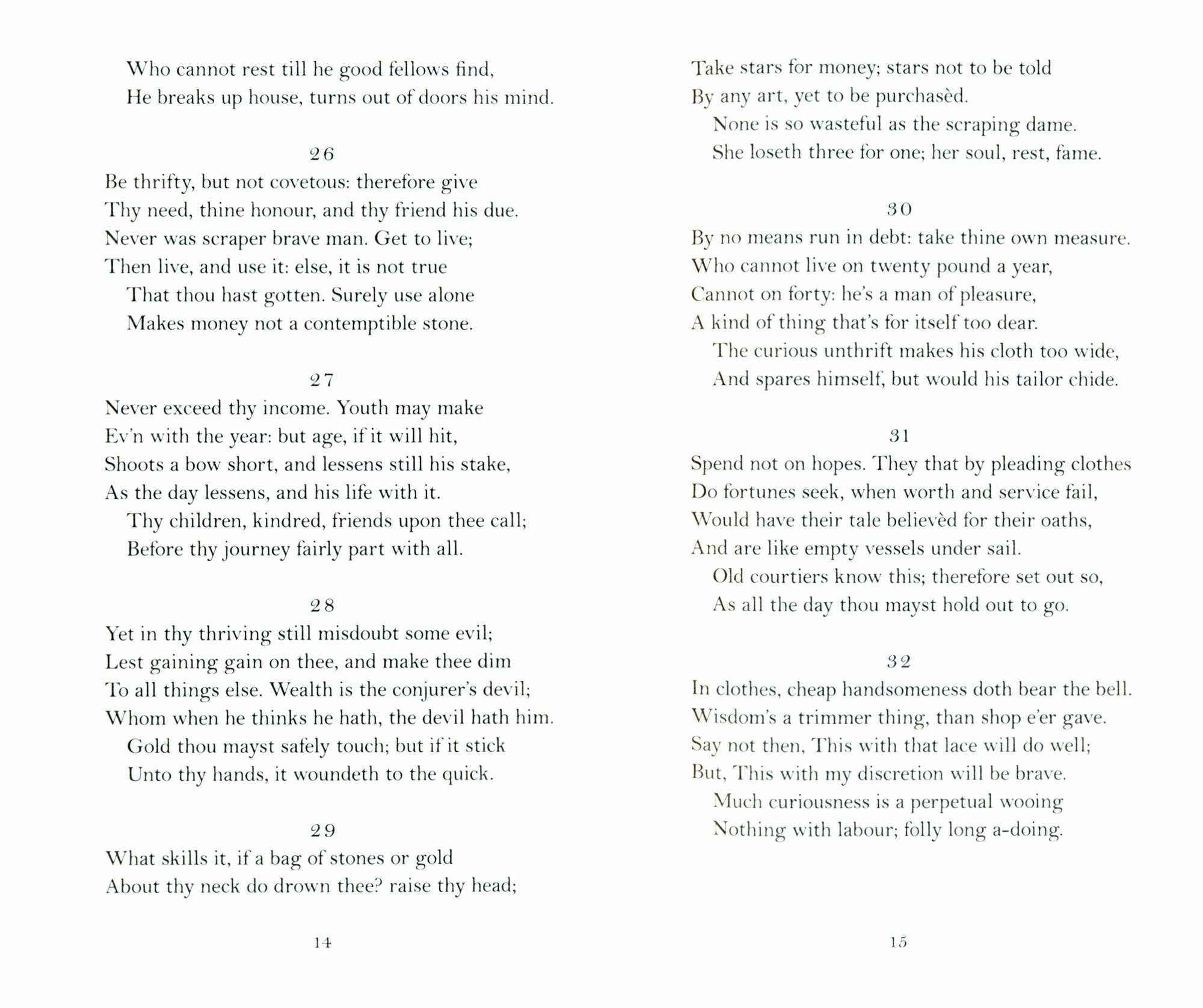 On his deathbed George Herbert entrusted the manuscript of The Temple to his friend Nicholas Ferrar, asking him to publish it if he thought it was worthy. Herbert died in 1633 and the collection was published the same year to great acclaim, subsequently becoming one of the best-loved collections in the English language. The Temple is an astounding collection of verse poems: an extended meditation on man's relationship to God that is characterised by Herbert's clarity and directness of style. It includes such favourites as 'The Collar', 'The Pearl' and 'Love', with its beautiful opening lines: 'Love bade me welcome; yet my soul drew back, / Guilty of dust and sin'.