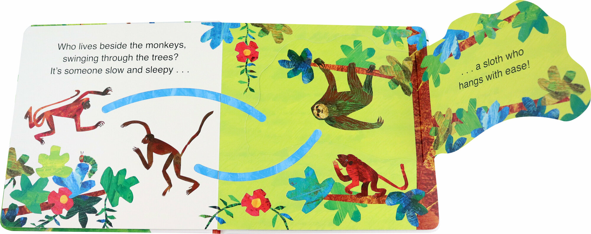 Follow the finger trails and lift the flaps to discover sleeping sloths, swooping parrots, crawling tigers and many more. A gentle rhyming narrative with a die-cut finger trail, die-cut details and a chunky flap on every page. There is so much for little hands to explore in this fun first introduction to jungle creatures and their habitat.