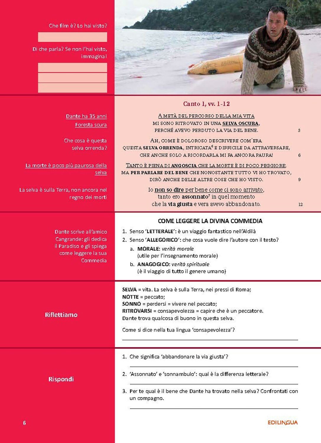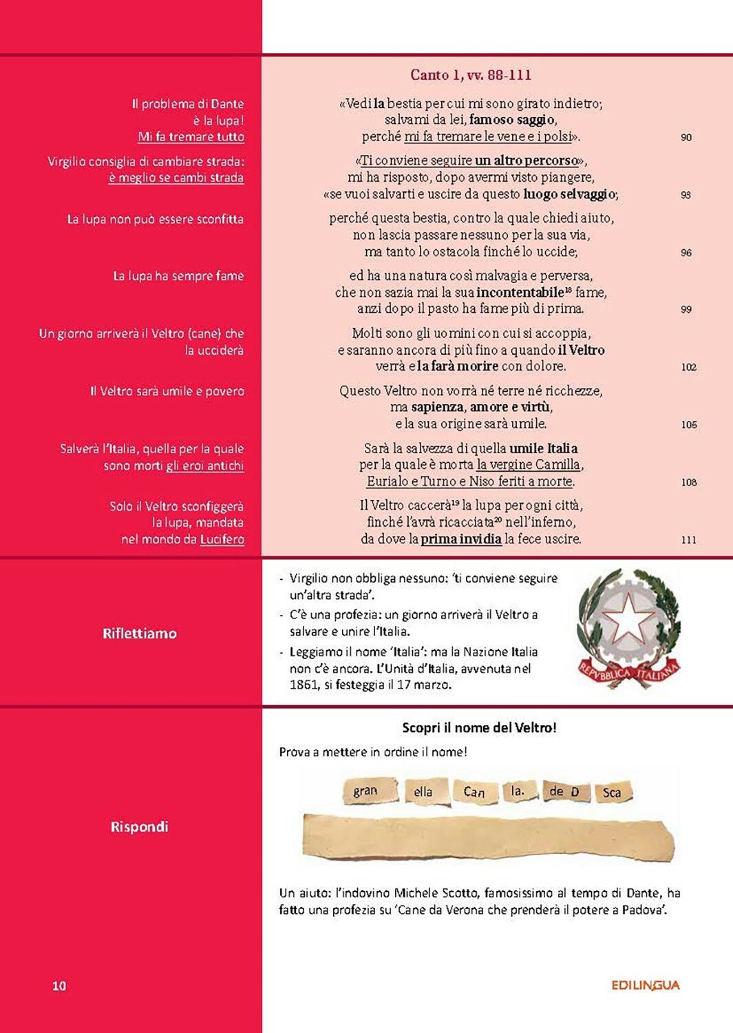 il percorso rosso presenta il riassunto e il testo in versione semplificata corredato da commenti utili alla comprensione. E ideato per gli studenti di livello intermedio, ma utilissimo come prima lettura anche per gli studenti di livello avanzato;