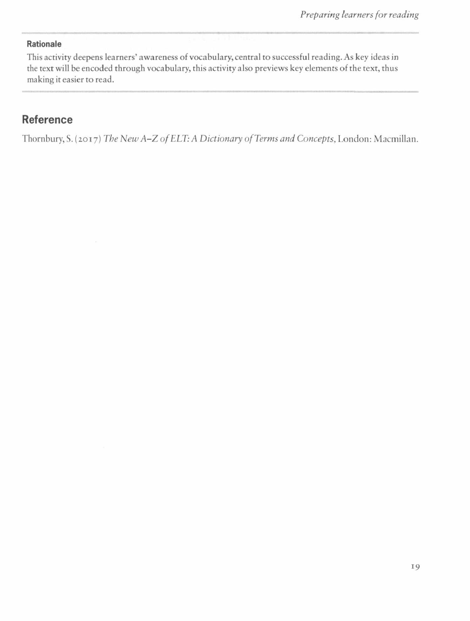This book is for anyone who wants to provide their learners with rich and rewarding reading experiences. Drawing on current reading theory, the book promotes the teaching of reading in a theoretically sound way, moving beyond a comprehension-testing approach to reading. The practical part of the book provides a collection of accessible, generic activities so that teachers can support and develop learners' reading skills and strategies. Its scope is wide-ranging, from promoting reading and developing fluency, to exploiting digital sources, using learner-generated texts and assessing reading. Further activities support teachers develop excellence in the teaching of reading through guided reflection and action research.