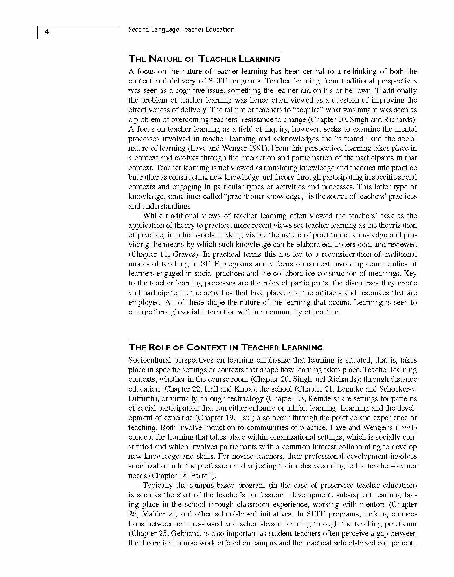 Cambridge Guide to Second Language Teacher Education; Cambridge, 2014