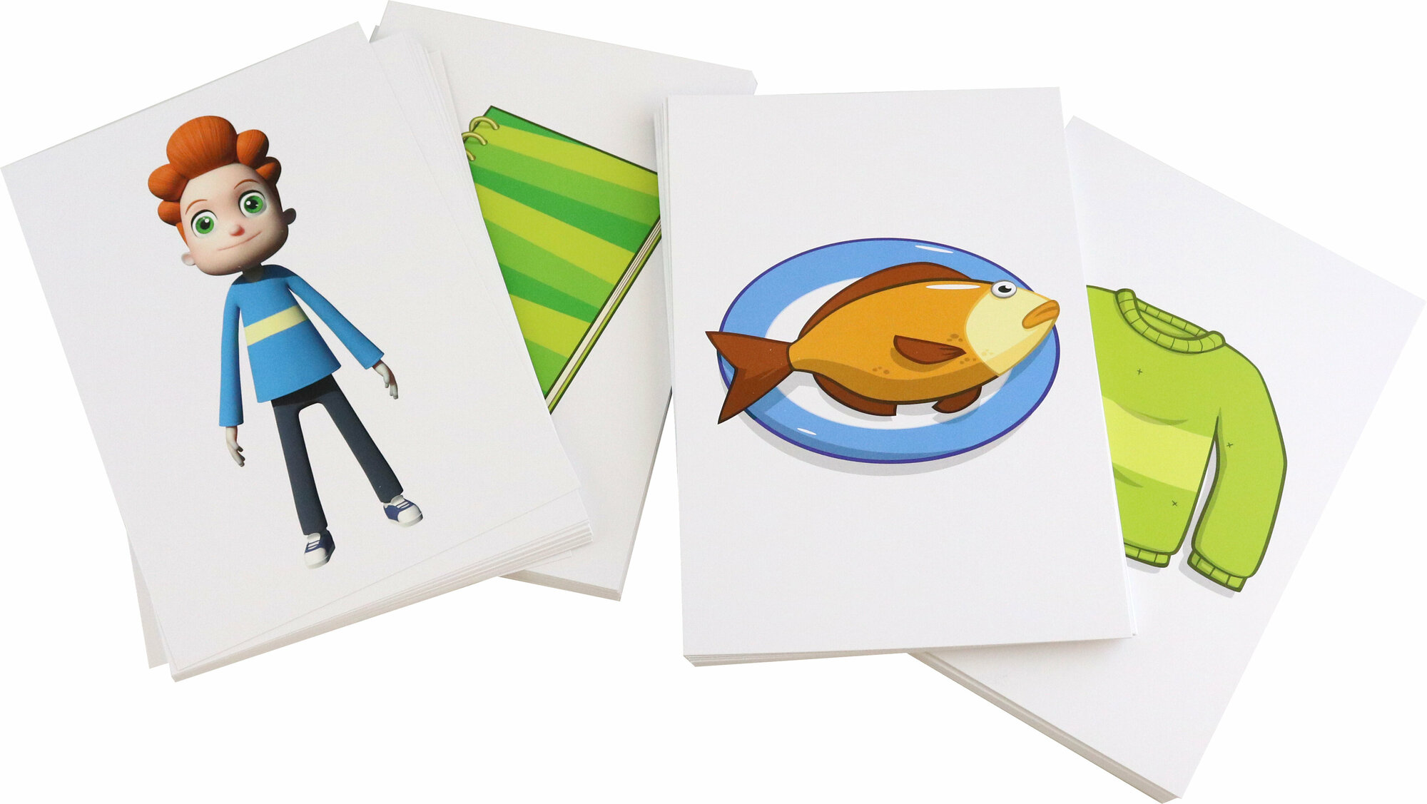 Карточки с иллюстрацией или фотографией на одной стороне и языком перевода на другой помогают ученикам практиковаться в изучении ключевых слов из соответствующего раздела учебника.