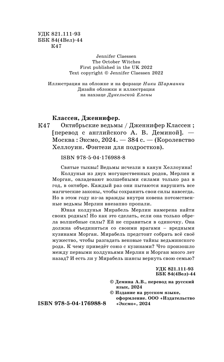Книга: Октябрьские ведьмы (Классен Дженнифер); ООО "Издательство "Эксмо", 2023