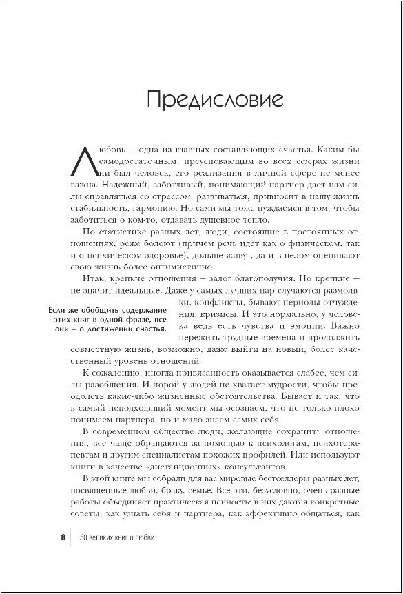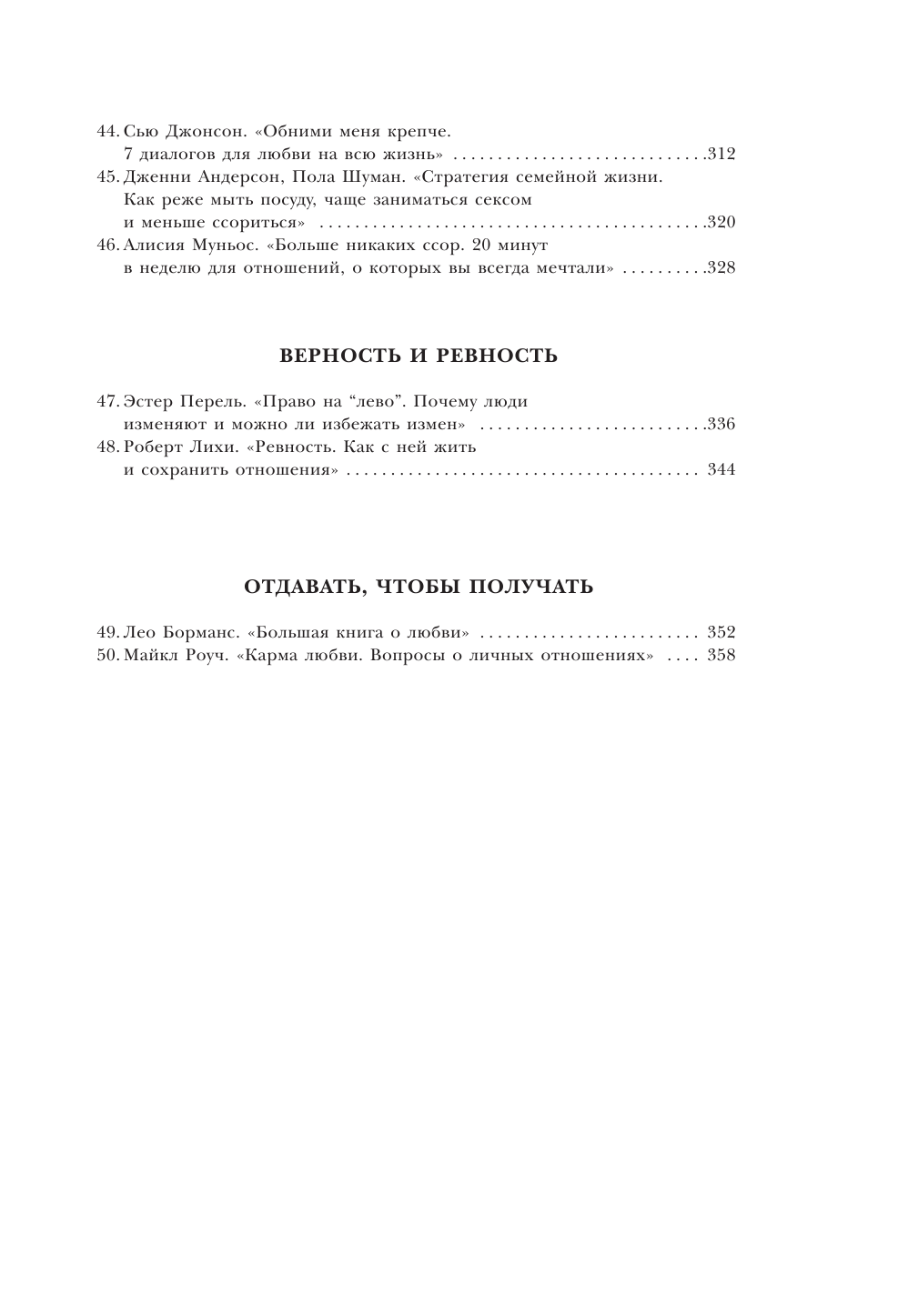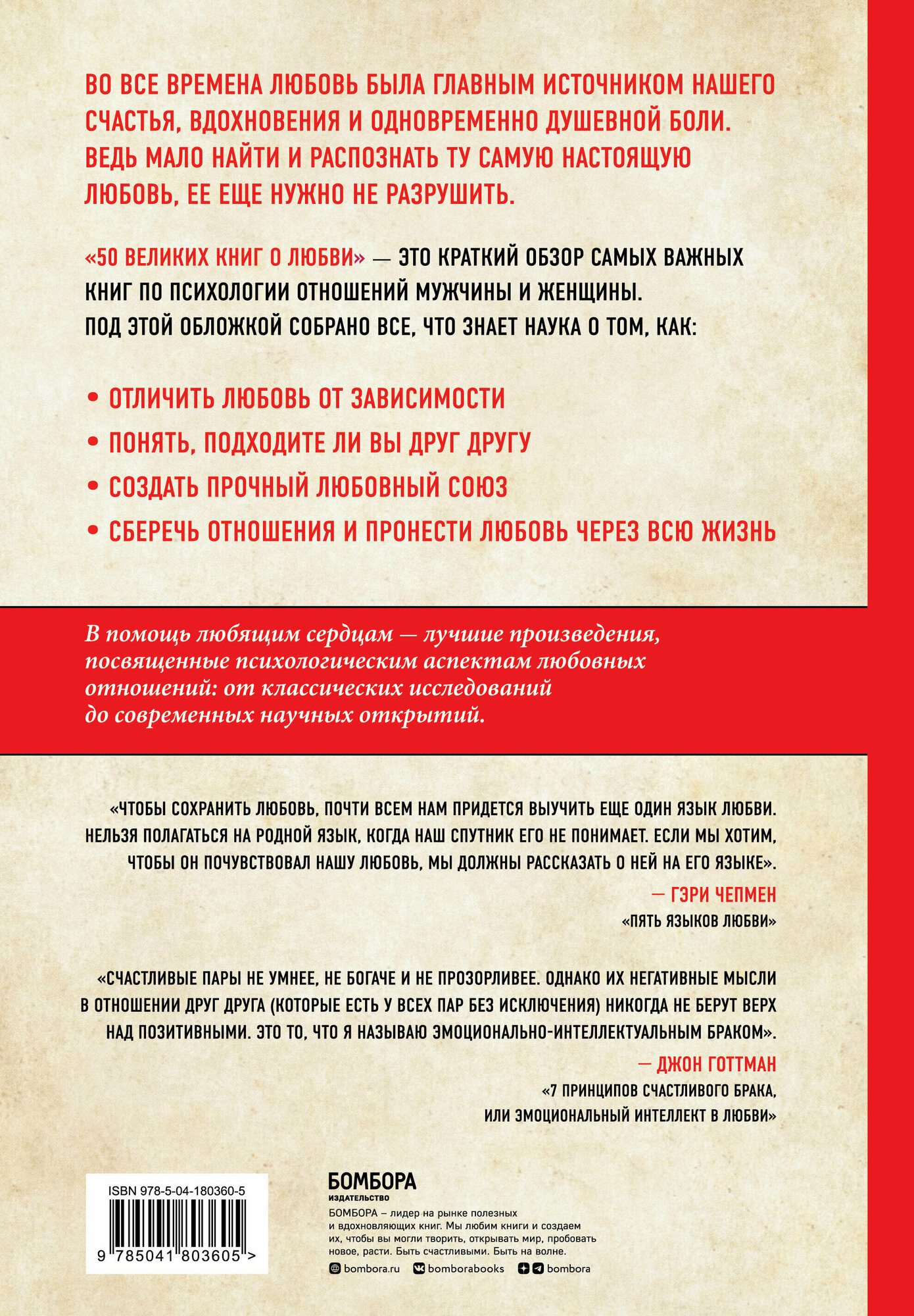 «50 великих книг о любви» — это краткий обзор самых важных книг по психологии отношений мужчины и женщины: от «Пяти языков любви» Гэри Чепмена до «Право на "лево"» Эстер Перель.