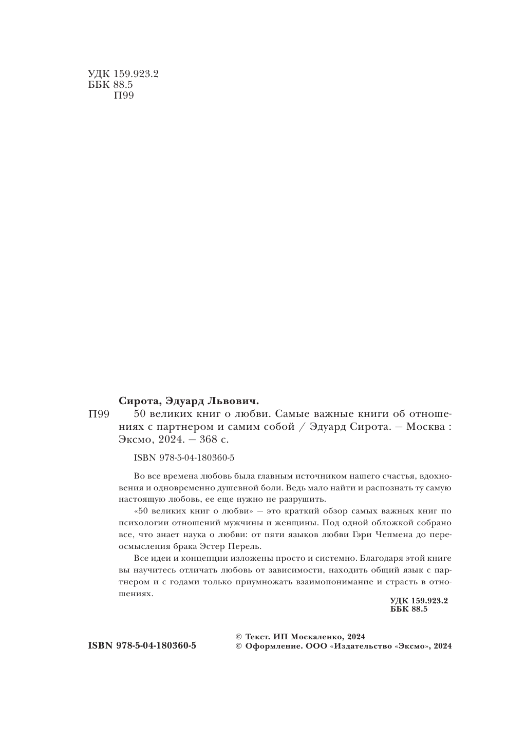 50 великих книг о любви. Самые важные книги об отношениях с партнером и самим собой (Эдуард Сирота); ООО "Издательство "Эксмо", 2023