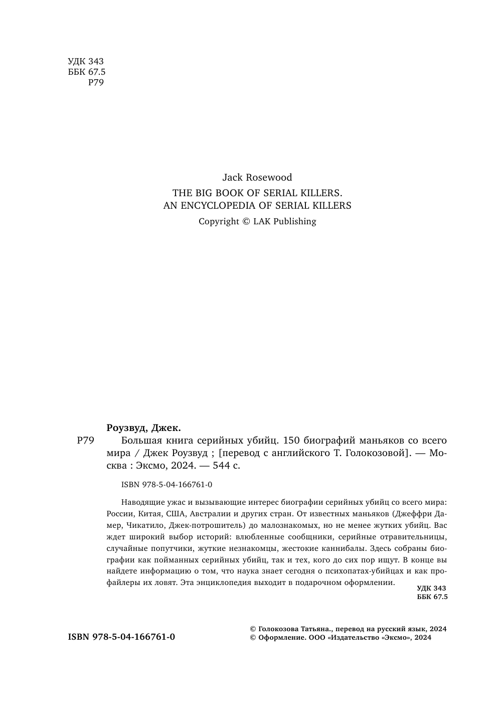 Большая книга серийных убийц. 150 биографий маньяков со всего мира (Роузвуд Джек); ООО "Издательство "Эксмо", 2024