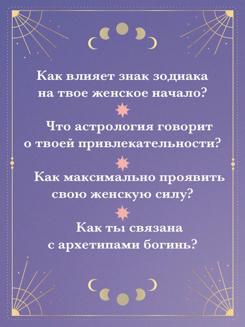 Изучение положения каждой из этих богинь в натальной карте раскрывает малоисследованную область — астрологию женского начала, рассматриваемую с точки зрения архетипов.