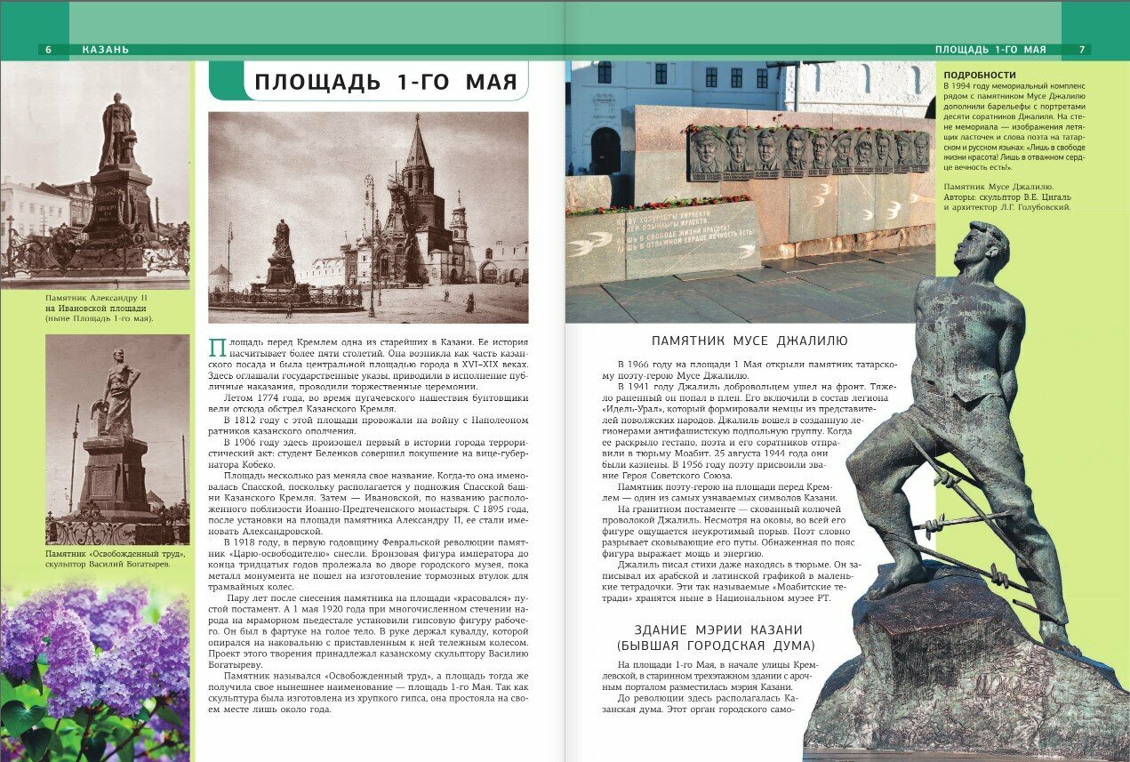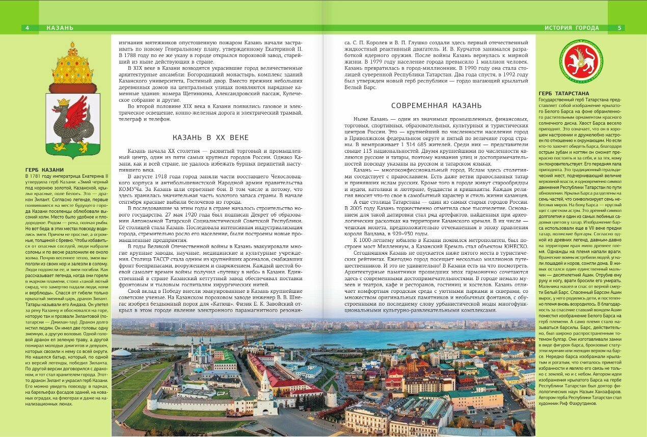 О самых красивых и интересных местах КАЗАНИ и ее окрестностях рассказано в этом издании. С помощью книги вы можете планировать маршрут прогулки по городу, узнаете, что обязательно стоит посмотреть. Этот путеводитель — отличный подарочный альбом для тех, кто любит гулять — своеобразный стимул к посещению новых интересных мест. А также замечательный подарок для тех, кто не имеет возможности для поездки в «третью столицу России», поскольку информация и фото, приведенные в книге, помогают путешествовать по Казани, не выходя из дома, погружаясь в познавательный рассказ и выразительные фотографии.