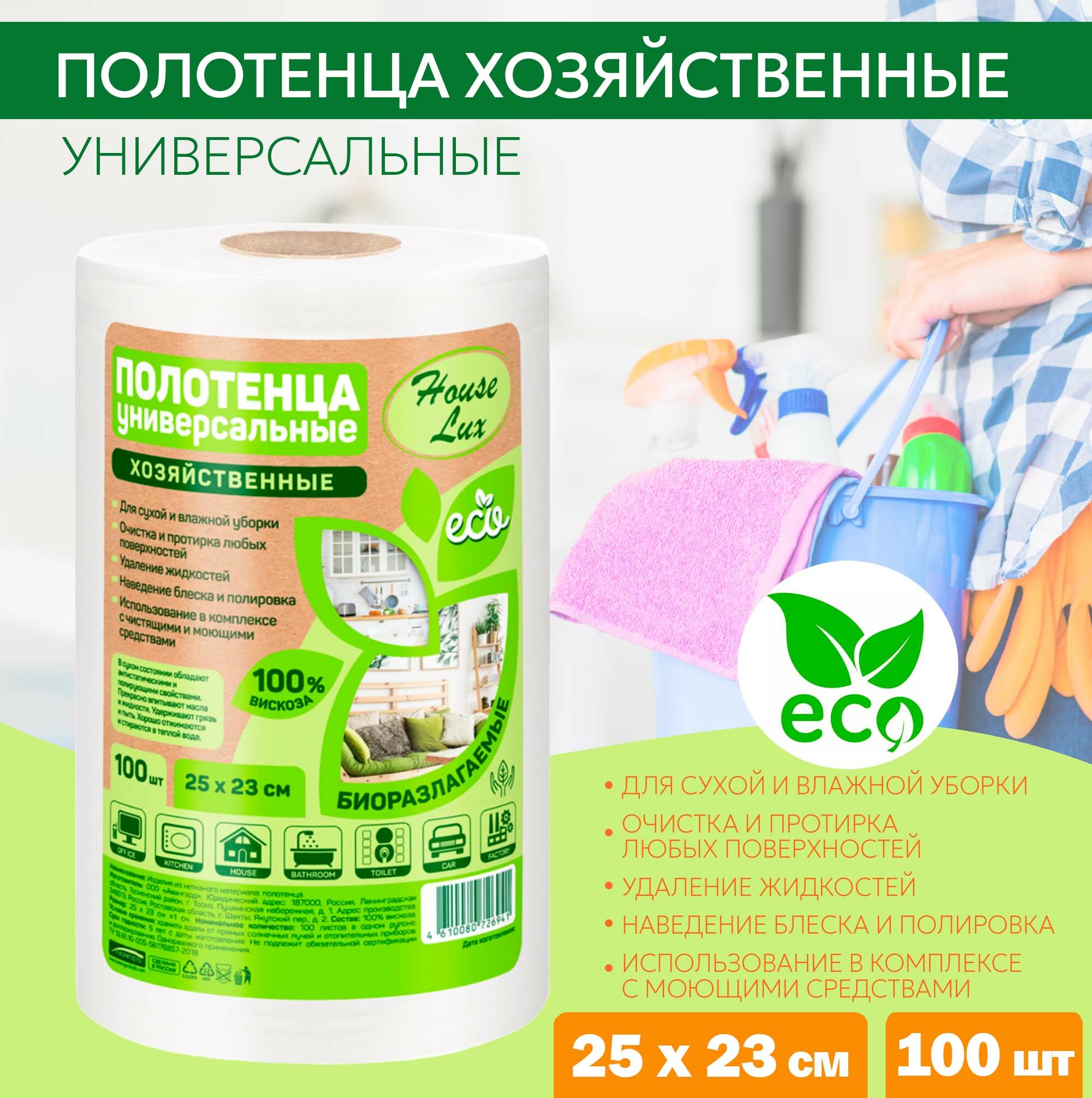 Салфетки House Lux универсальные из вискозы рулон 100 шт. (размер: 25х23)