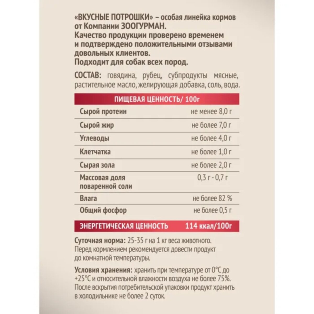Корм для собак "Вкусные Потрошки" Говядина-рубец 750 гр Зоогурман