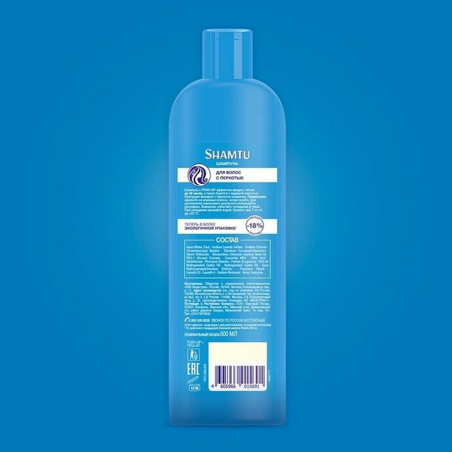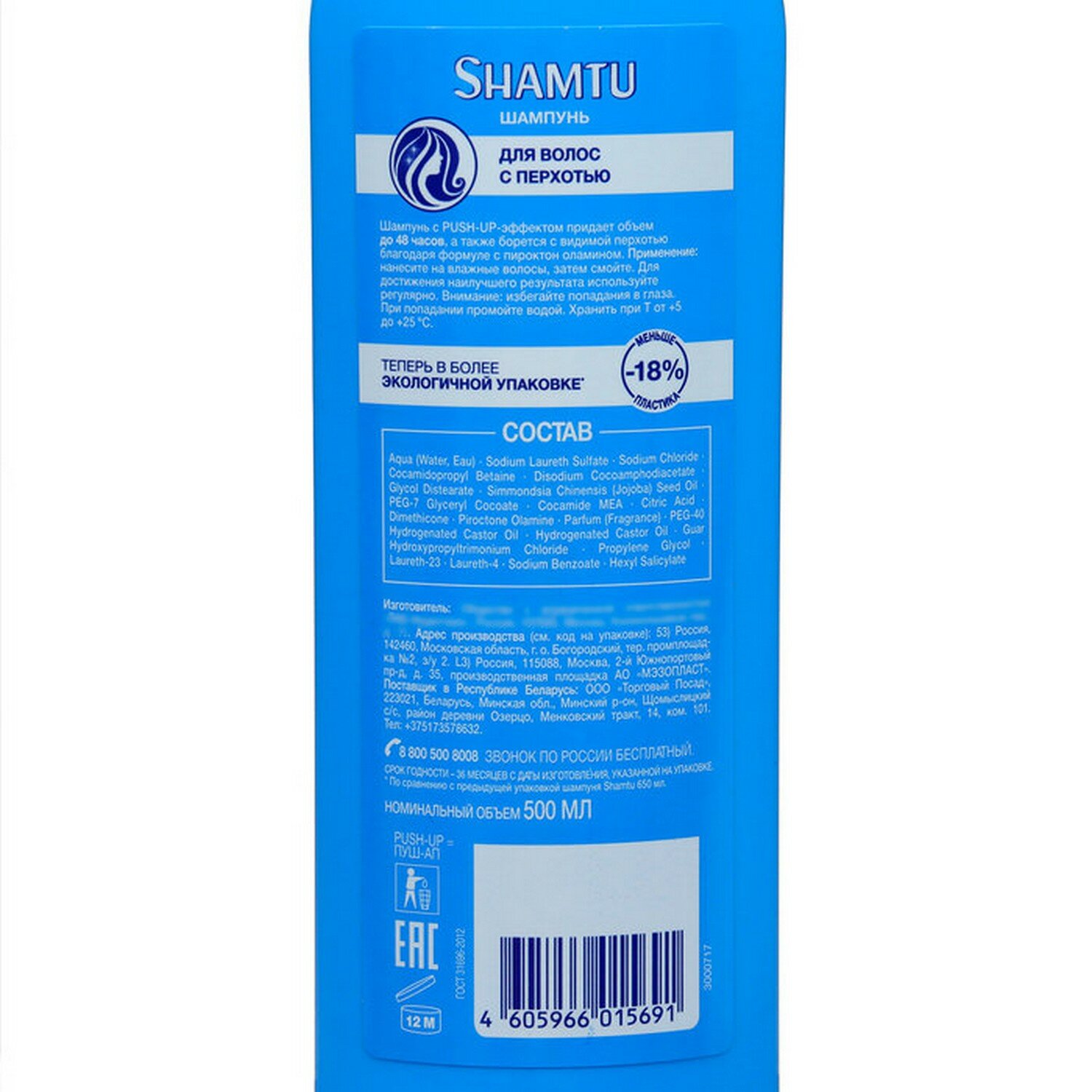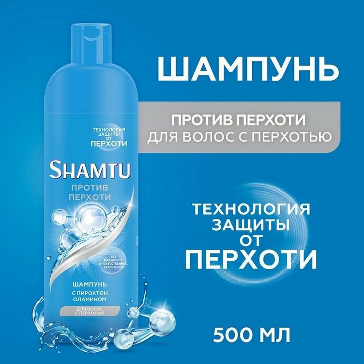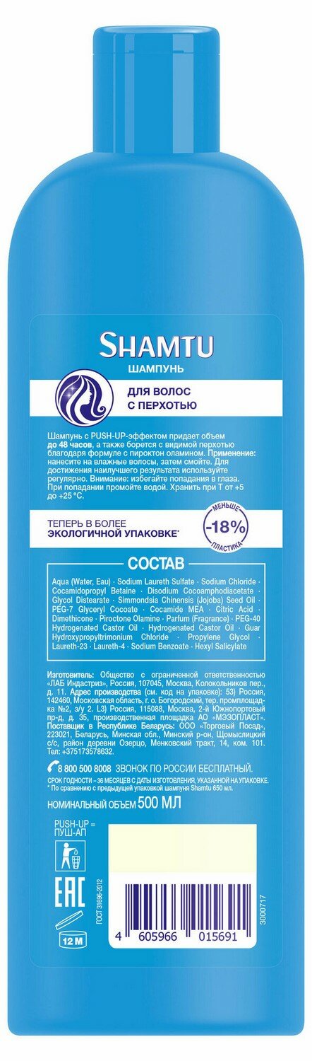 Shamtu Шампунь против перхоти с пироктон оламином, с PUSH-UP эффектом придает объем до 48 часов, а также борется с видимой перхотью.