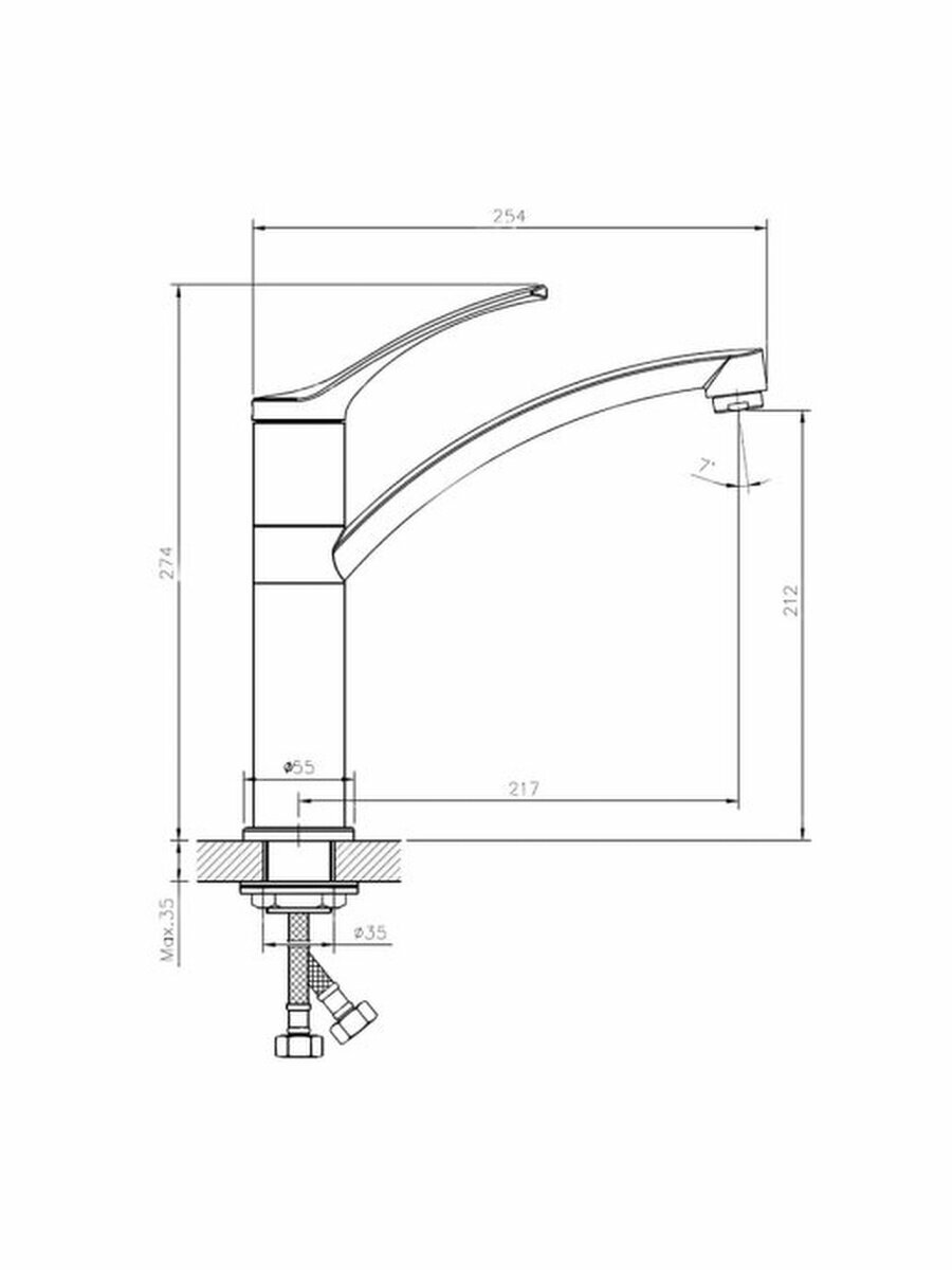 Предназначен для смешивания холодной и горячей воды, поступающей из централизованной или местной системы водоснабжения. Имеет поворотный излив, керамические картридж 35 мм, аэратор. Состав: латунь с хромированным покрытием. Комплектация: смеситель, подводка гибкая 1/2 дюйма, крепеж. Размеры: высота излива - 223 мм, длина излива – 182 мм. Производитель: Чехия.