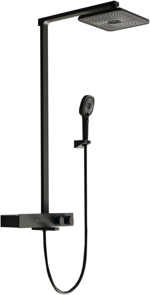 | Комплект поставки | смеситель; термостат; кронштейн; шланг; держатель; лейка; стойка; полочка; верхний душ; излив |
