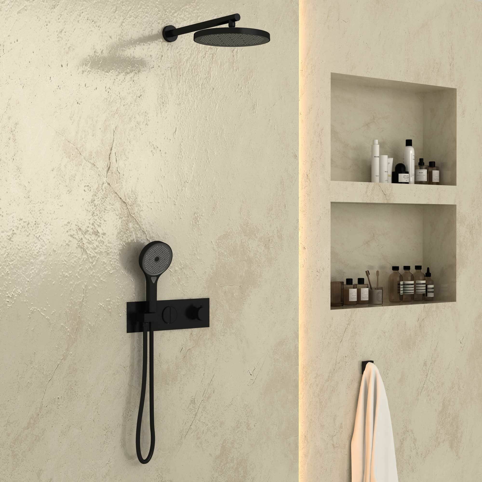 В комплекте: Верхний душ, ручной душ, смеситель со встраиваемой частью
