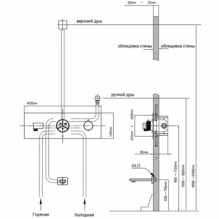 - Стандарт подводки: G 1/2.