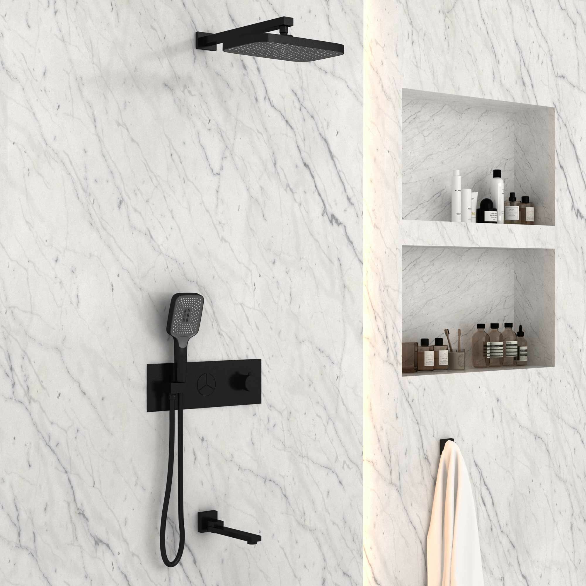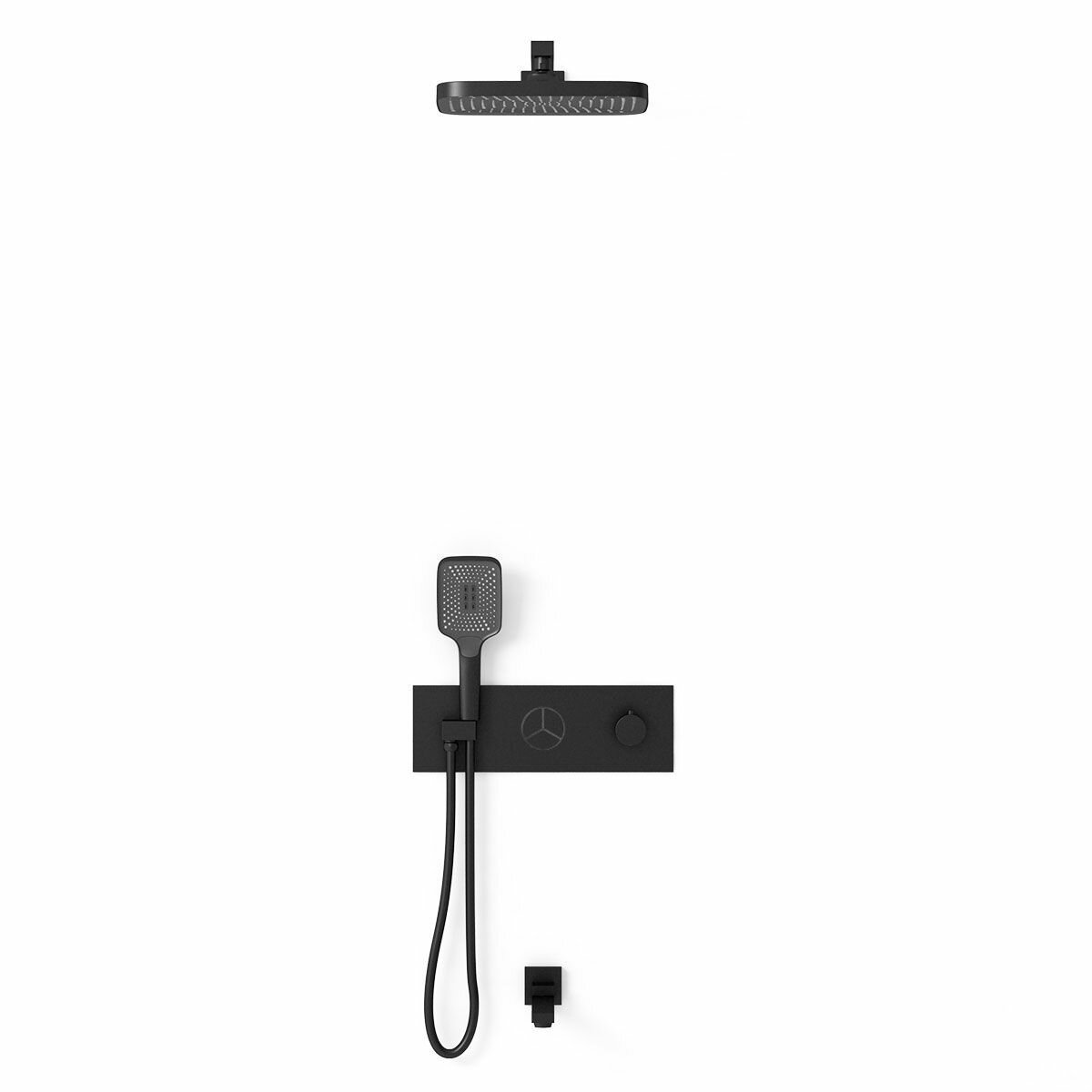 В комплекте: Верхний душ, ручной душ, встраиваемый смеситель, излив