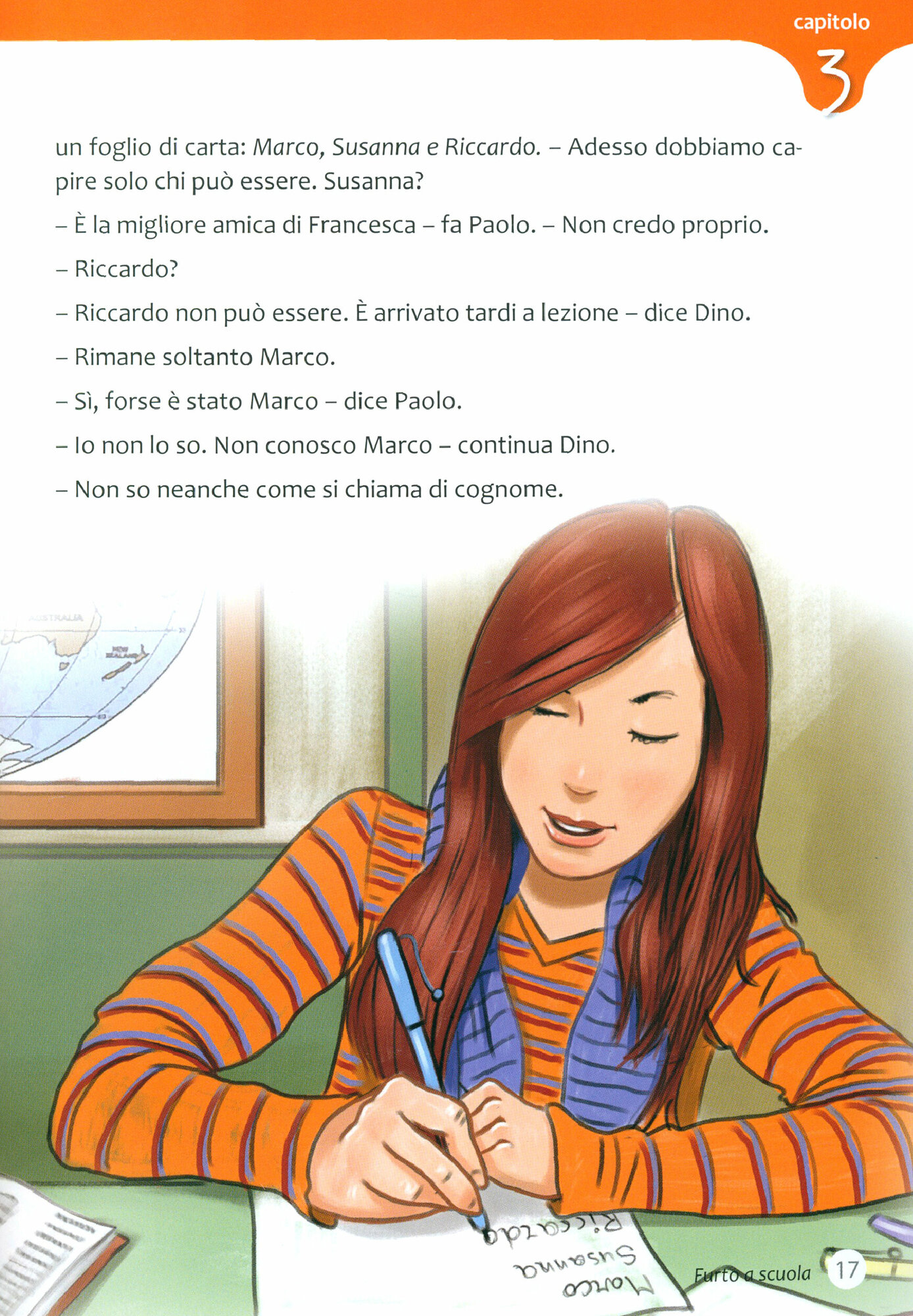 Furto a scuola (A1, A1+) Chi ha rubato la pochette griffata di Francesca? Paolo, Giulia e Dino si mettono alla ricerca del colpevole. Le loro indagini porteranno Francesca a trovare non solo il prezioso oggetto, ma anche dei veri amici.
