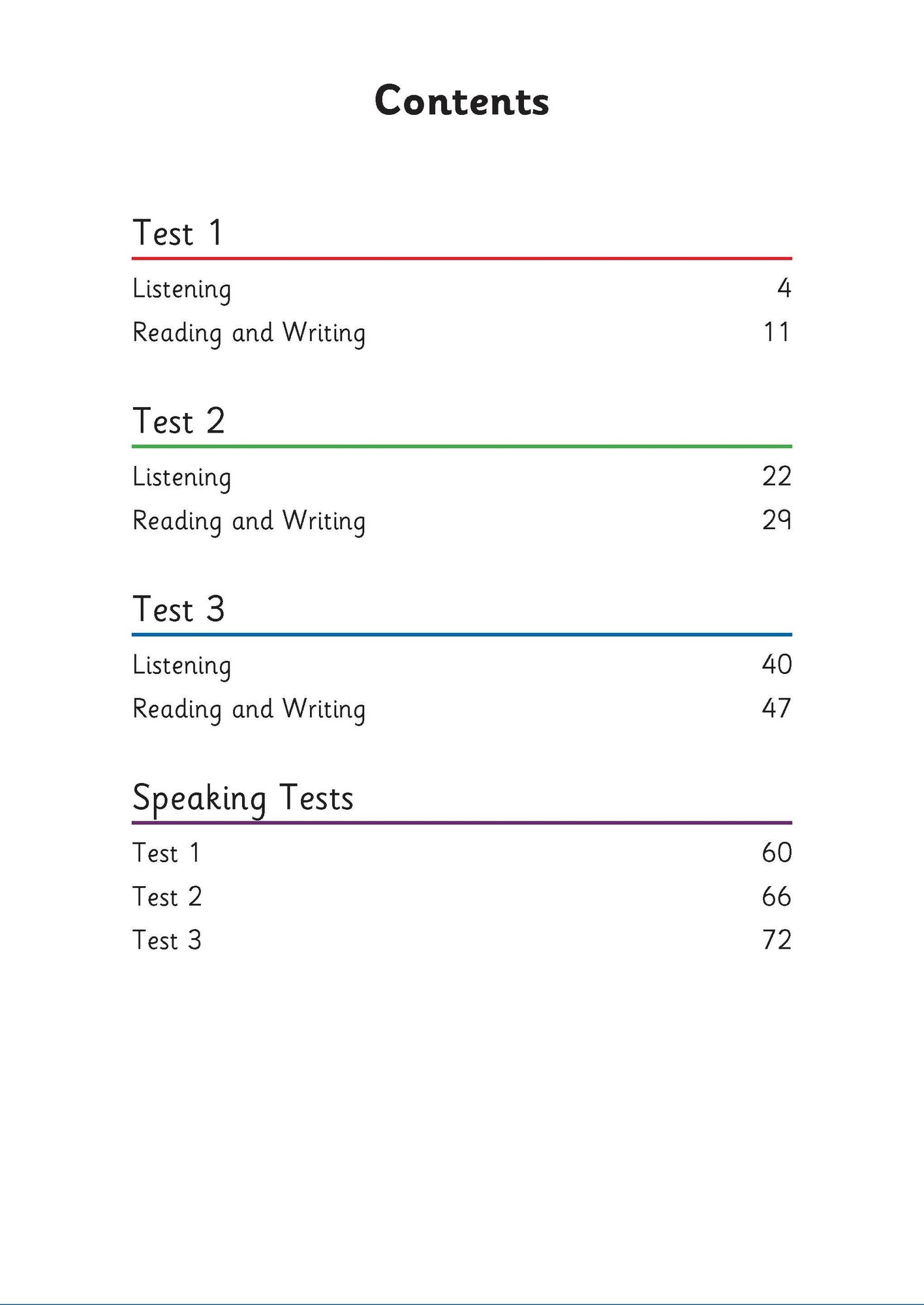 Этот сборник экзаменационных работ обеспечивает идеальную практику экзамена. Он содержит три полноцветных экзаменационных листа с увлекательными заданиями и привлекательными иллюстрациями для мотивации юных учащихся. Эти документы дают прекрасную возможность, как родителям, так и учителям ознакомиться с форматом экзамена и помочь учащимся.