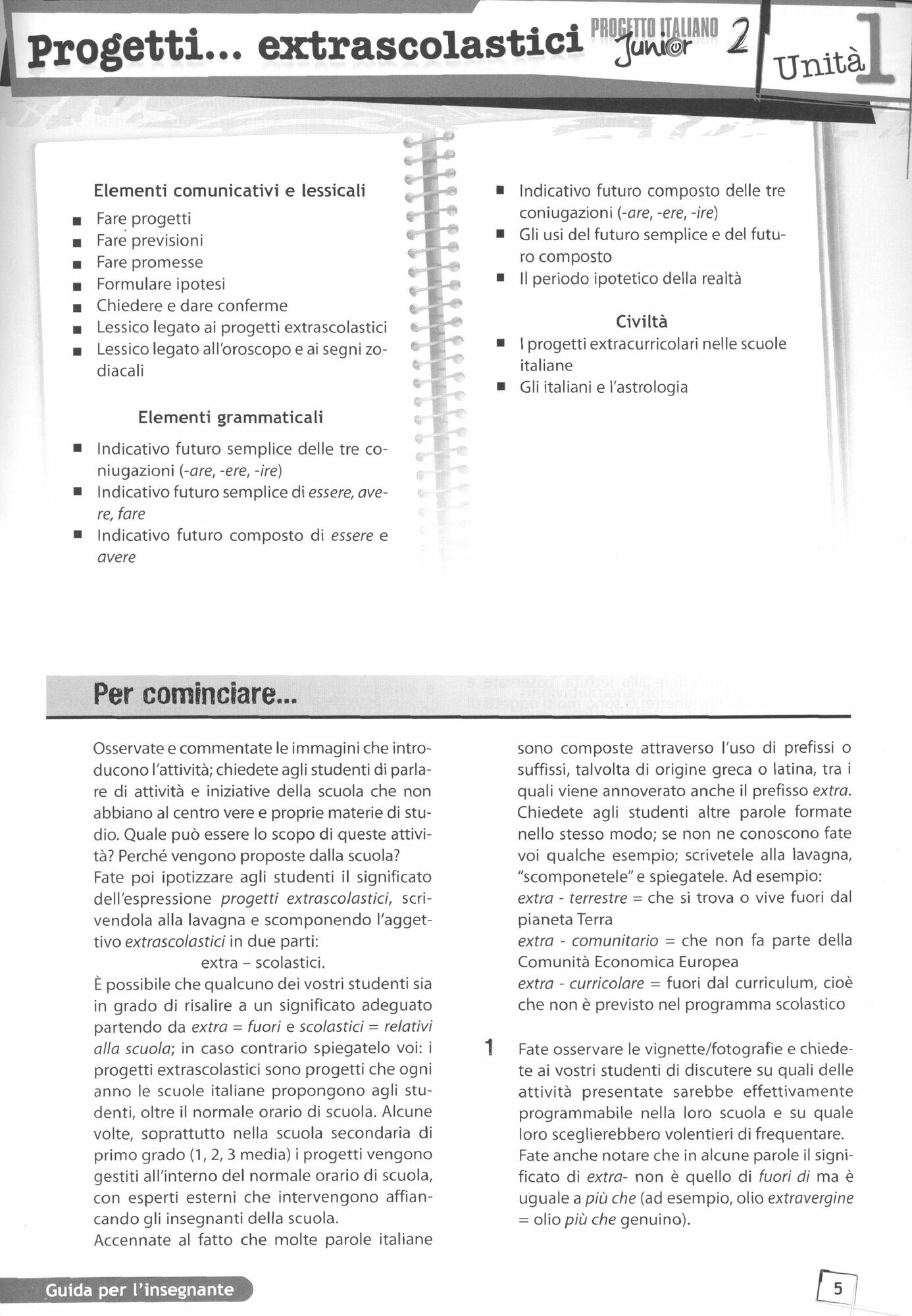 Segue una sezione introduttiva, Per cominciare, la quale, rispecchiando la disposizione degli argomenti utilizzata in Prosetto italiano Junior, inquadra il contenuto generale dell’unita.
