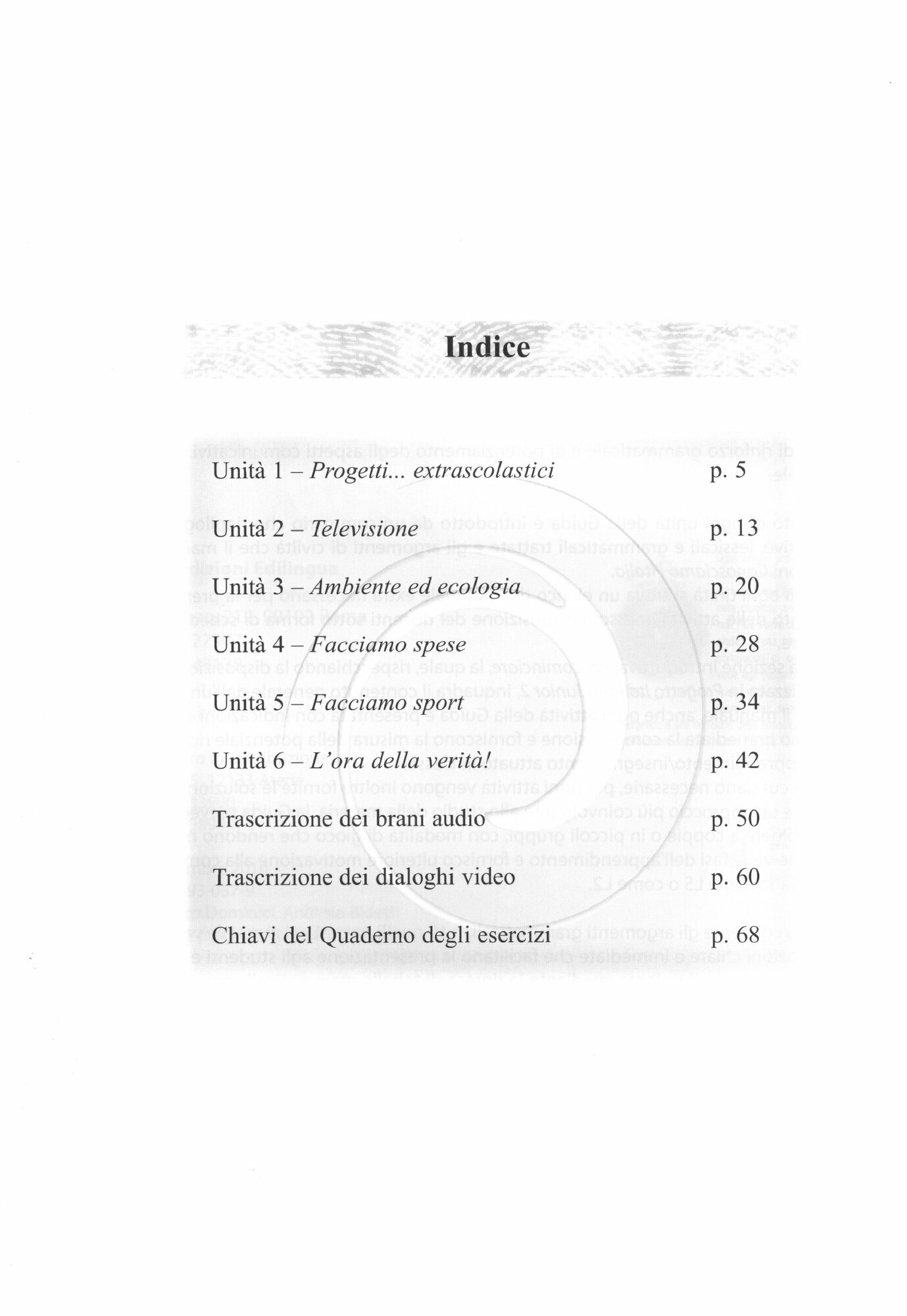 La Guida per l’insesnante rispetta la struttura del manuale e si sviluppa anch’essa in sei unita, con l’aggiunta di interessanti spunti per la programmazione e la realizzazione di momenti di approfondimento con l’inserimento di attivita ludiche, di momenti di rinforzo grammaticale e di potenziamento degli aspetti comunicativi gia presentati nel manuale.