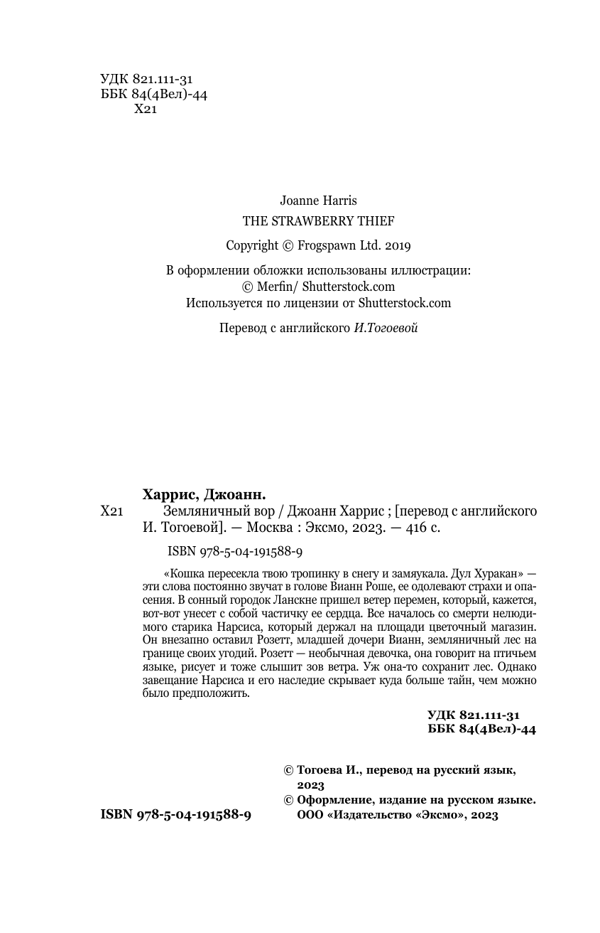 Книга: Земляничный вор (Джоанн Харрис); Эксмо, Inspiria, Редакция 1, 2023