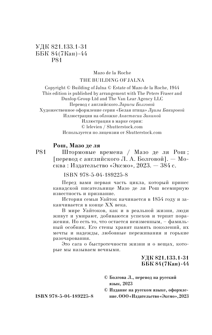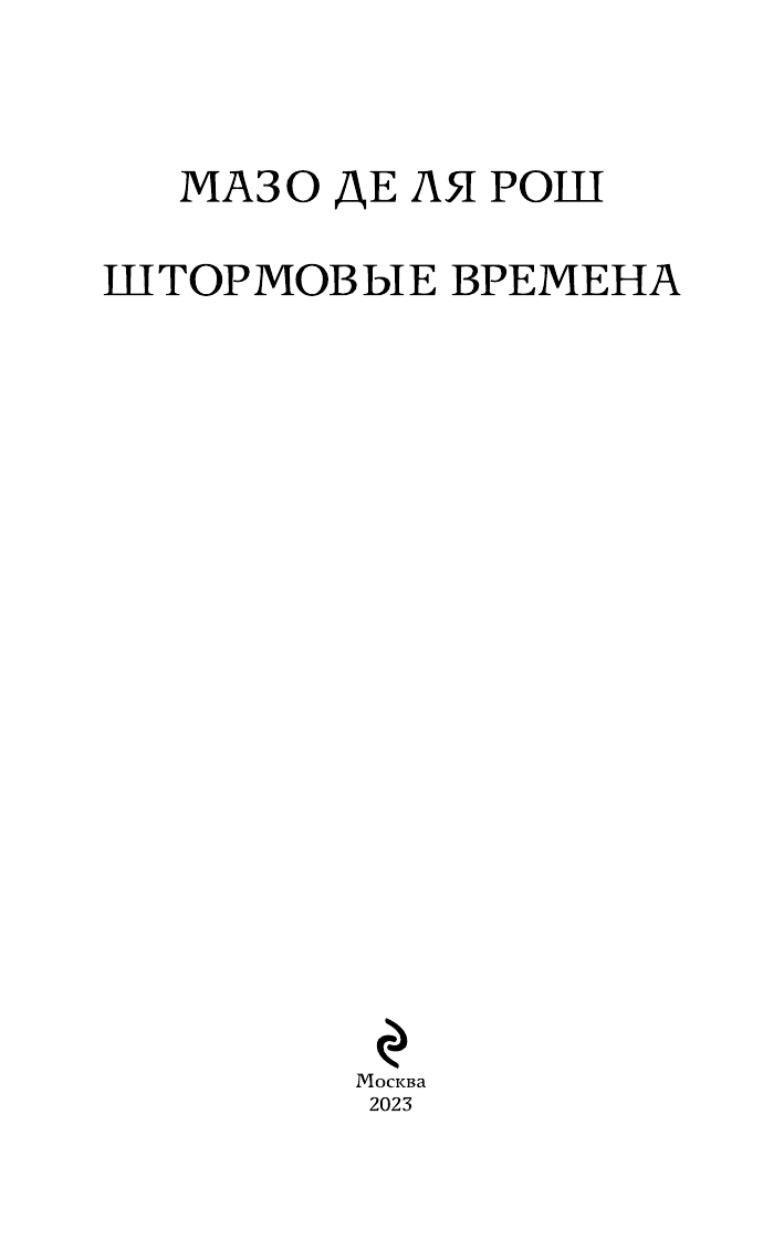 Книга: Штормовые времена (Мазо де ля Рош); Эксмо, Редакция 1, 2023