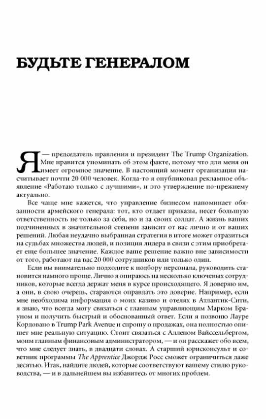 В своей книге Дональд Трамп, риелтор-миллиардер, автор многих бестселлеров, политический деятель, избранный в 2016 году президентом США, открывает секреты своего успеха. Он пишет о том, как правильно вкладывать деньги; производить впечатление на руководителя и получать повышение; успешно управлять бизнесом; нанимать, стимулировать и увольнять сотрудников; вести переговоры; поддерживать доброе имя своей торговой марки; мыслить по-крупному и жить на все сто. Книга полна деловых советов и житейской мудрости и рассказывает о том, как легальным образом создаются огромные состояния и как управлять первоклассным бизнесом.