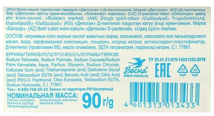 Сервис сравнения цен СкидкаГИД предлагает сравнить цены на товар «Крем-мыло детское Весна с Д-пантенолом 90 г»