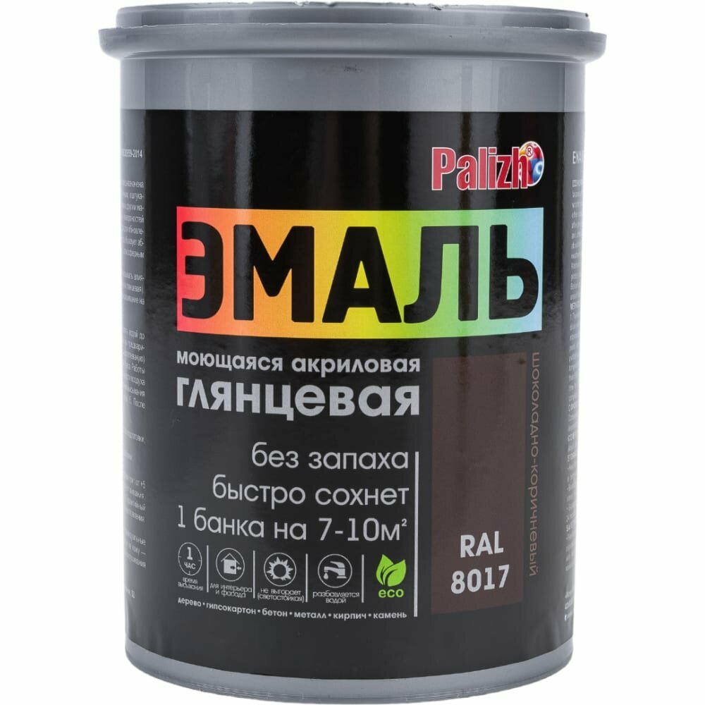 PALIZH Эмаль акриловая глянцевая №602 темно-коричневая 1кг 1/6 11605610 глянцевая 602 темно-коричневая 1кг 1/6
