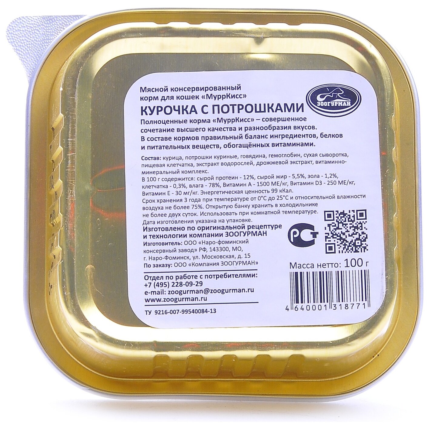 Корм для кошек "Murr Kiss" курица с потрошками 100 г Зоогурман