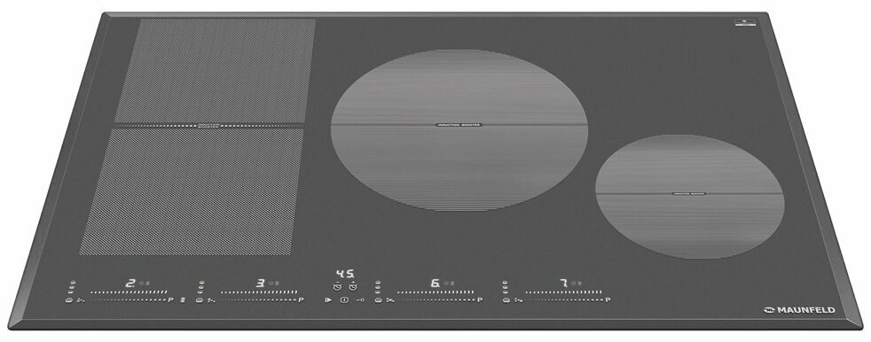 Индукционная варочная поверхность с технологией непрерывного нагрева и Flex Zone из дизайнерской серии MAUNFELD имеет ширину 80 см, глубину 52 см и высоту 6 см. Flex Zone представляет собой инновационную систему индукционных конфорок, которая обеспечивает полную свободу в использовании посуды любого размера, от турки до казана. Плита для нагрева задействует только ту поверхность, с которой соприкасается дно посуды и только там, где вы ее поставили. Технология непрерывного нагрева обеспечивают постоянную температуру в ходе всего процесса приготовления блюд. Сенсорно-слайдерное управление варочной поверхности позволяет легко регулировать настройки. 4 слайдера на каждую зону приготовления.Индикатор наличия посуды показывает, что посуда отсутствует на конфорке или не подходит для использования на индукционной панели.Японская стеклокерамика NIPPON GLASS обладает наибольшей прозрачностью, чем любая другая керамика, что позволяет передавать красивый, ровный серый/ графитовый цвет. Стеклокерамика из Японии отличается улучшенной полировкой поверхности стекла и стойкостью к химическим веществам.Функция «Stop+Go» («Выключил и иди») позволяет сделать паузу в приготовлении одним нажатием кнопки – и возобновить работу с теми же настройками.Защитное автоотключение обеспечивает самостоятельное отключение конфорки в случае перегрева или попадания воды, это гарантирует высокую степень безопасности для Вас и вашего дома.Регулируемый таймер с отключением поможет без хлопот следить за приготовлением. Его можно установить на время до 99 минут, варочная панель сама прекратит нагрев.Функция «Замок от детей» заблокирует работу панели, чтобы маленькие члены семьи не начали процесс приготовления ужина без вас.Три предустановленных режима работы (режим размораживания, подогрева или поддержания теплоты и режим сильного нагрева), автоматически настроят интенсивность готовки. А с помощью таймера вы может выбрать наиболее подходящее время. Серия представлена в трех цветовых решения: черном, сером и графитовом.