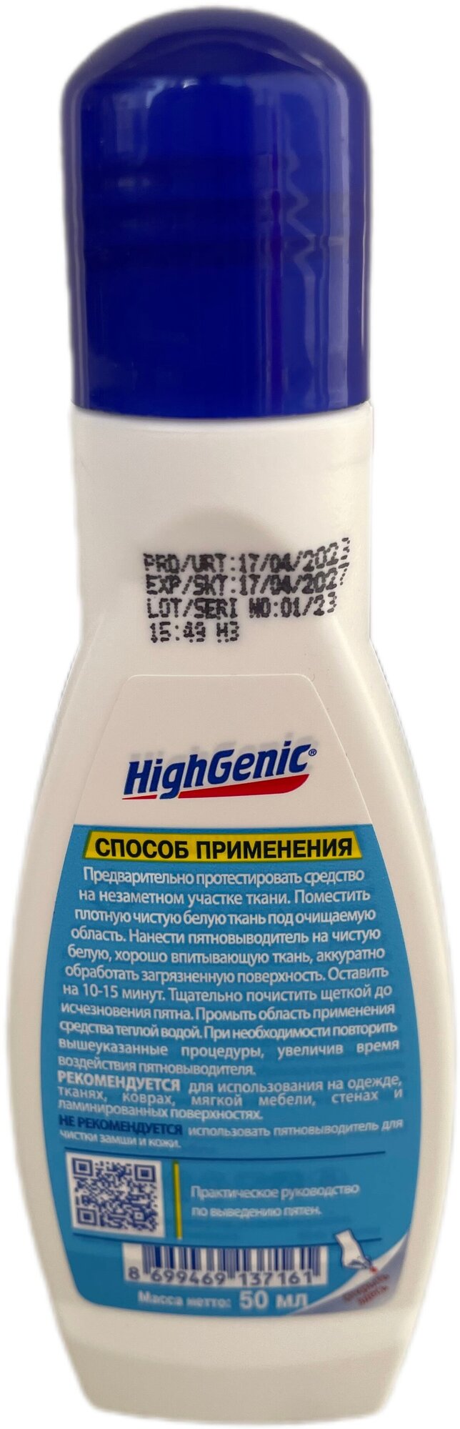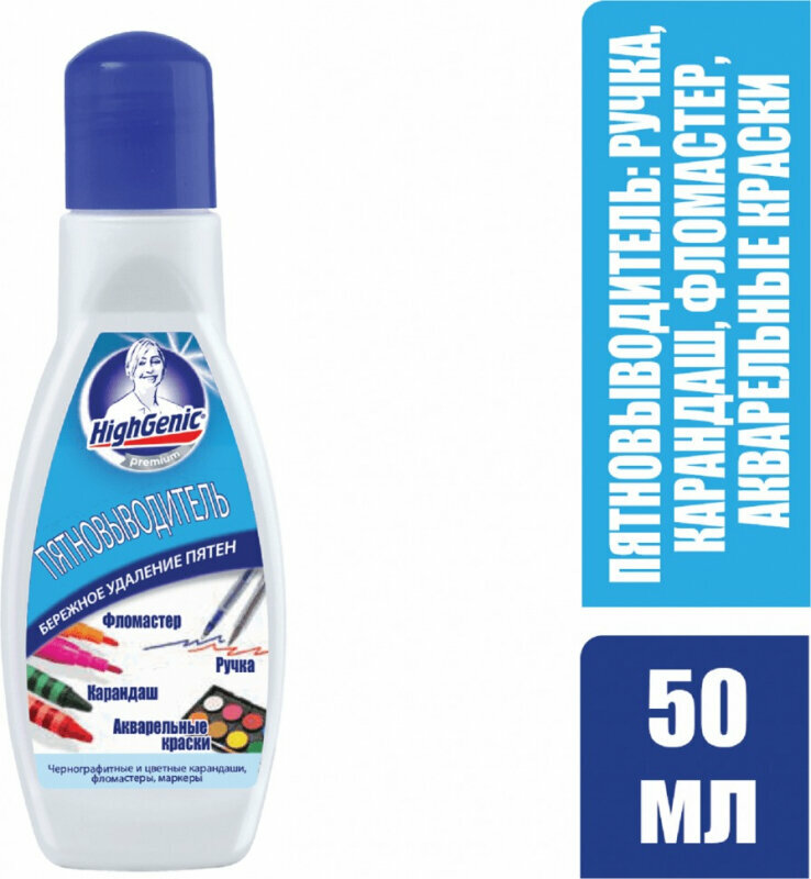 Пятновыводитель HighGenic для удаления следов фломастера ручки карандаша и акварельной краски Premium 50 мл