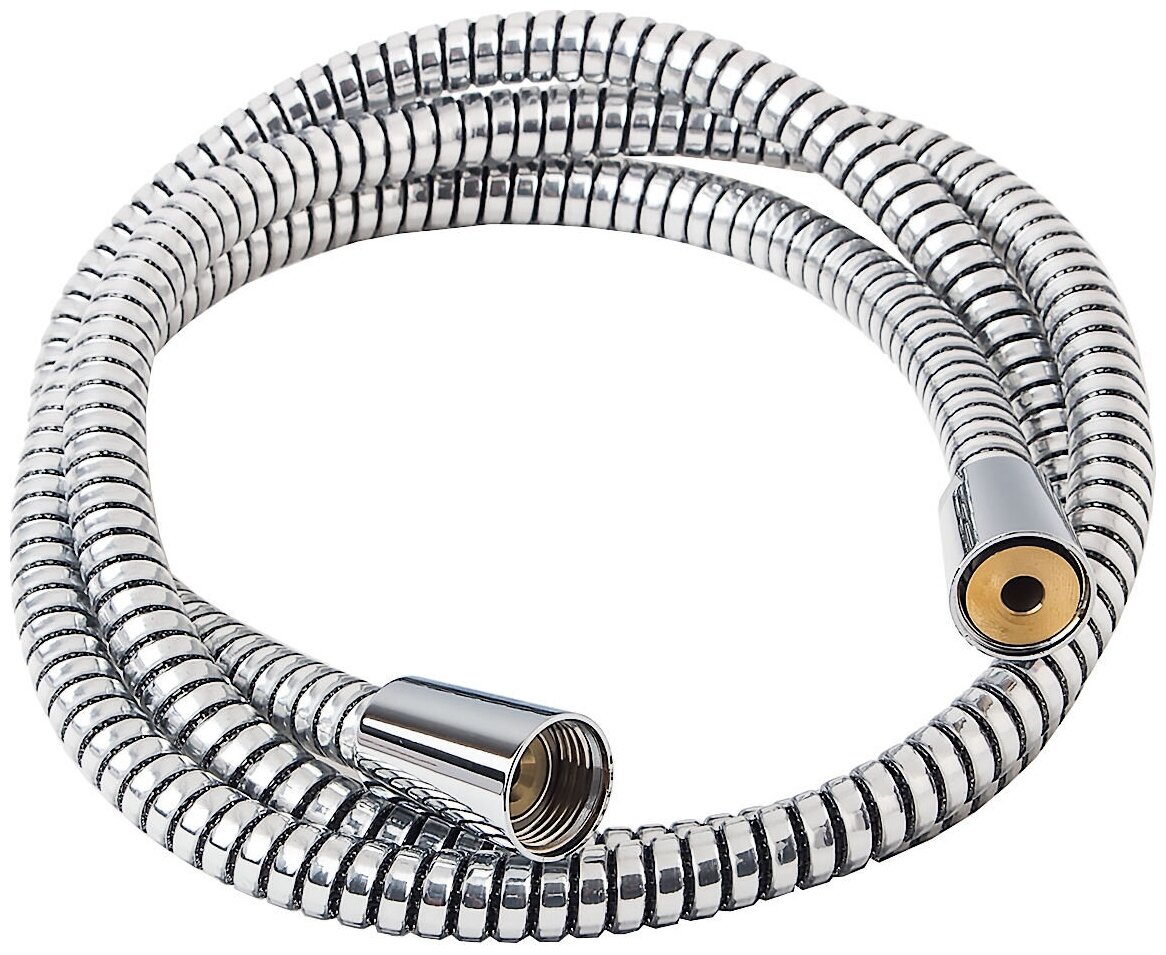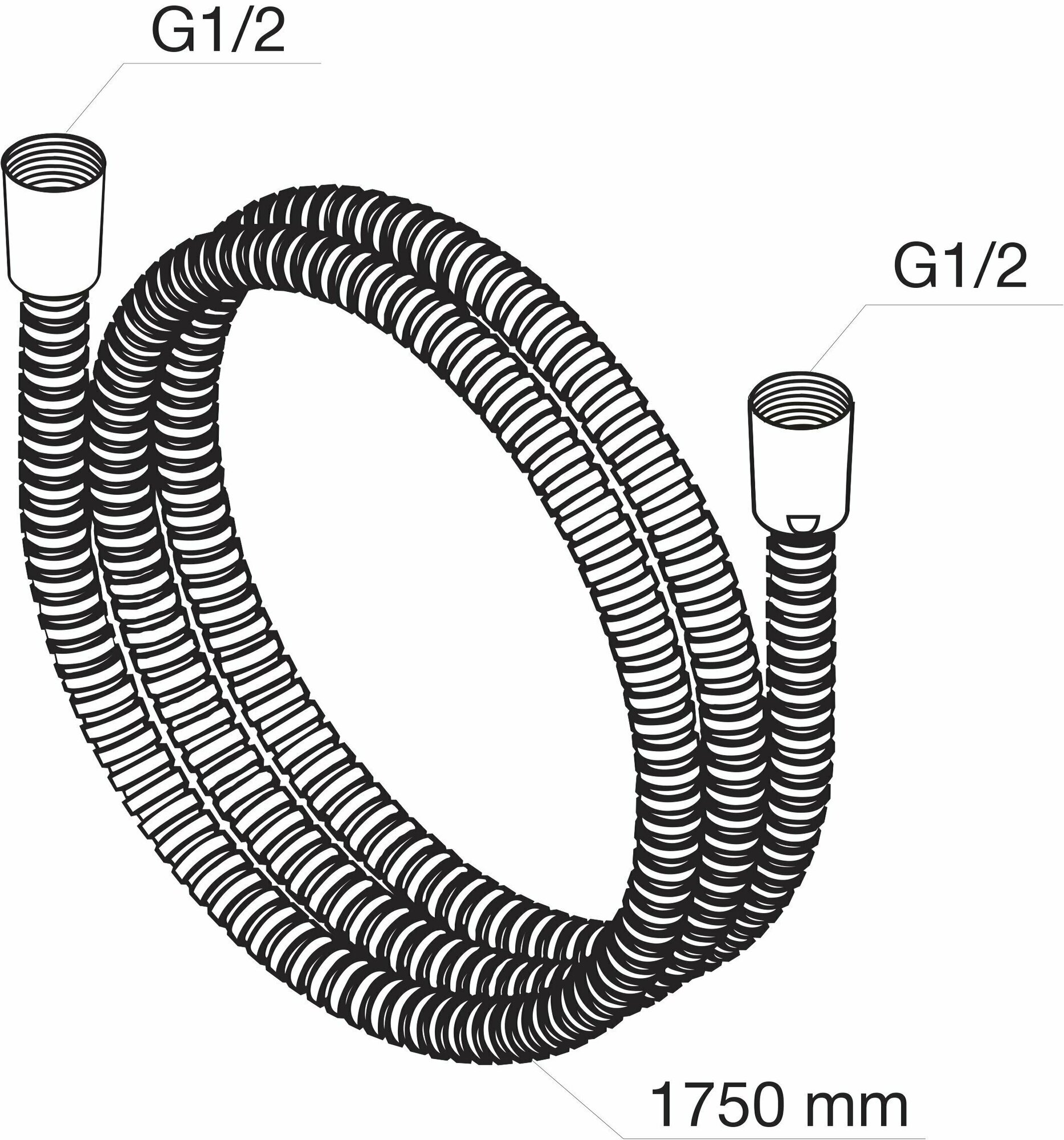 Изготовлен в Дании, имеет длину в 175 см, металлическую гофрированную оплетку с глянцевым хромовым покрытием. Оснащен монтажными гайками с резьбой в 1/2 дюйма и резиновыми прокладками.