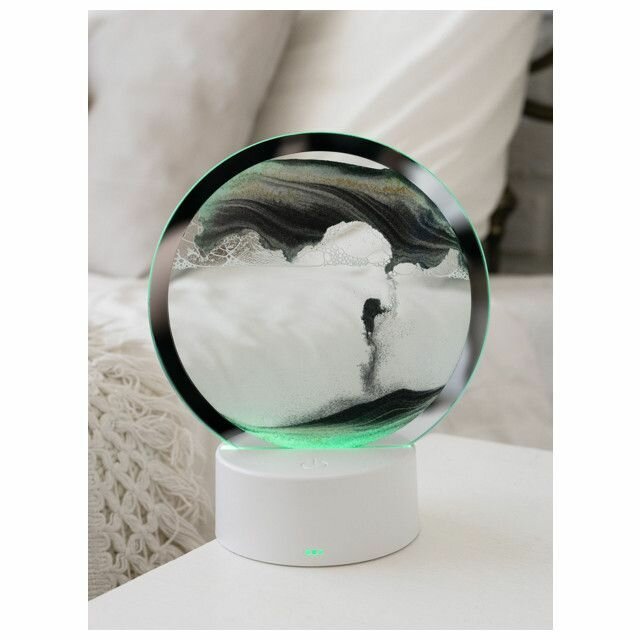 Современный светильник Sands создаст уютную атмосферу и украсит интерьер вашего дома. Светильник ночник состоит из пластиковой панели с расположенными внутри светодиодами и круглой стеклянной пластины. При переворачивании светодиодного светильника песок начинает пересыпаться, формируя красивые необычные узоры внутри стекла. Цвет и режимы свечения декоративного светильника переключаются касанием по панели. Дополнительно на выбор предоставляется несколько режимов свечения, которые помогут создать наиболее подходящую для вас атмосферу. Режимы: 7 статичных цветов на выбор + автоматическая последовательная смена цветов RGB.