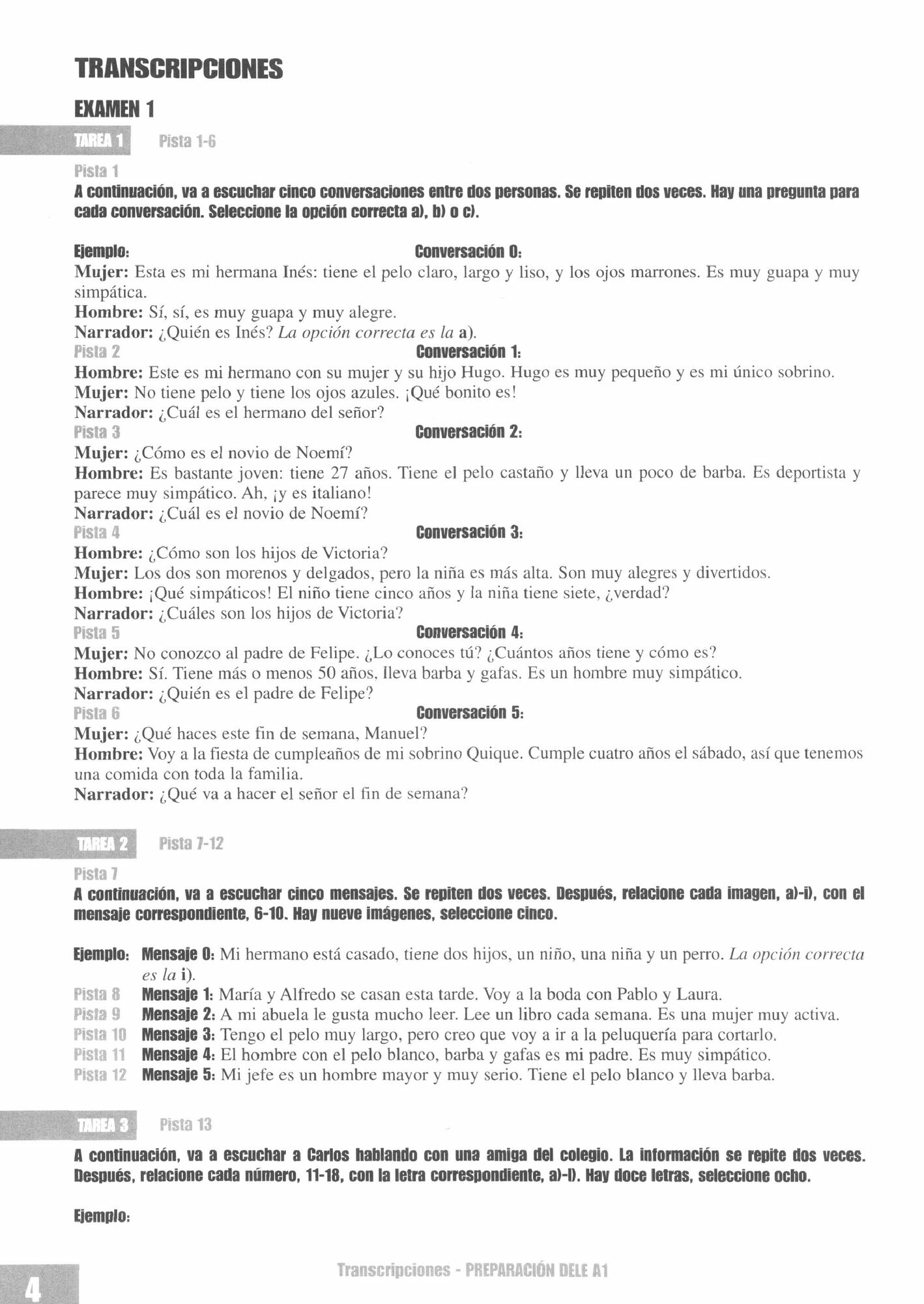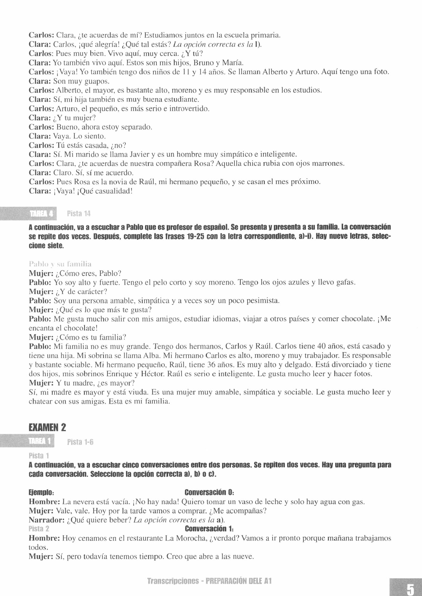 Las transcripciones de la prueba 2, Comprension auditiva.