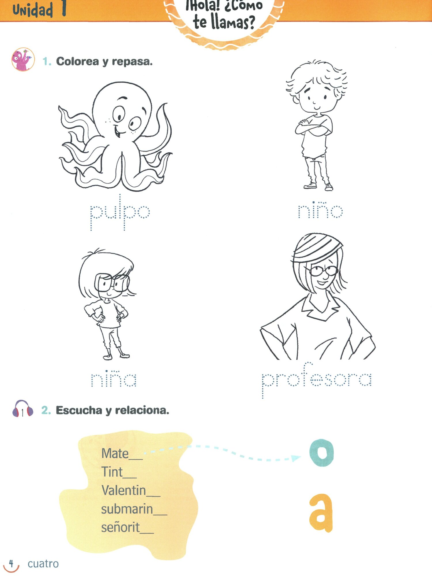 - Tinta: un pulpo de peluche con el que van a hablar en espanol.