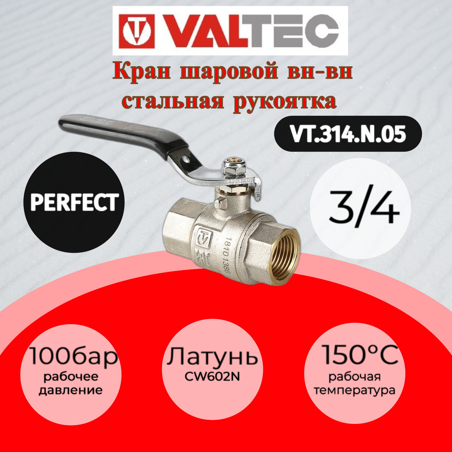 Кран шаровой Valtec Perfect усиленный стальная рукоятка 3/4"