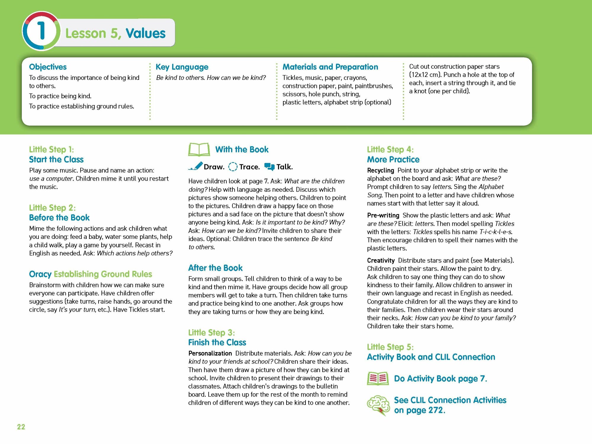 Step into the world of Cambridge Little Steps, a language and early literacy course that gets very young children communicating in English while nurturing their key life competencies and human values needed to become kind, creative individuals ready to make the most of life's opportunities. Explore: beautiful stories that develop rich, natural vocabulary along with emotional competencies and values; Big Questions that encourage children to investigate real-life topics from different angles; support for early literacy and basic math skills; playful activities and class projects that promote collaboration and turn learning into fun!