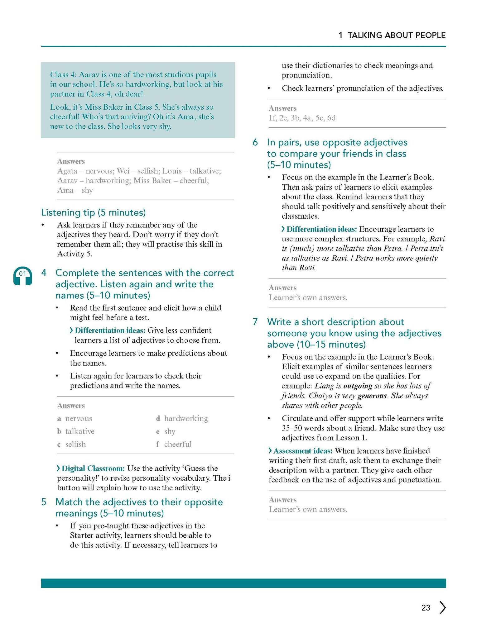 With everything you need to plan and run your lessons, this teacher’s resource helps you get the most out of the series. You’ll find starter activities and additional lesson ideas not included in the student’s books, as well as answers for all activities. There are clearly identified assessment and differentiation ideas to help you meet all your learners’ needs. Includes access to photocopiable games and activities for additional differentiation and further language development in the accompanying digital resource. Every unit includes a test to help you understand where your learners are on their journey.