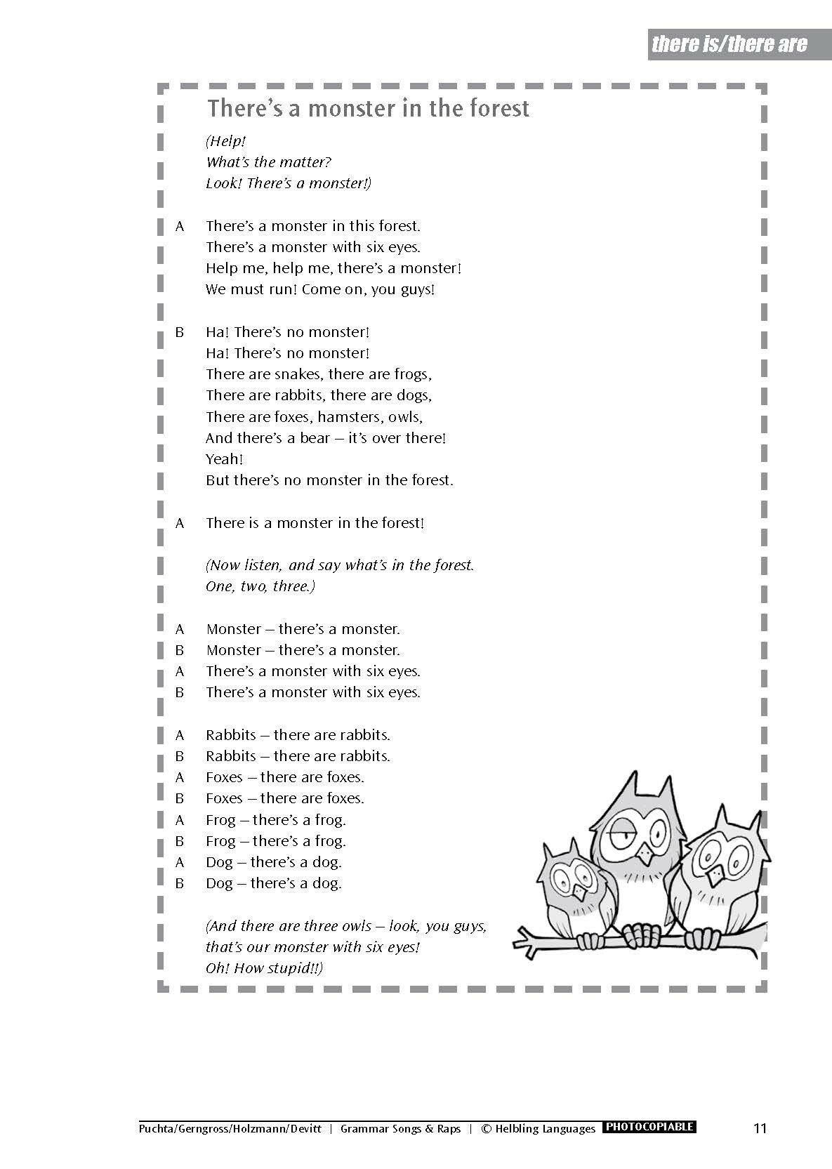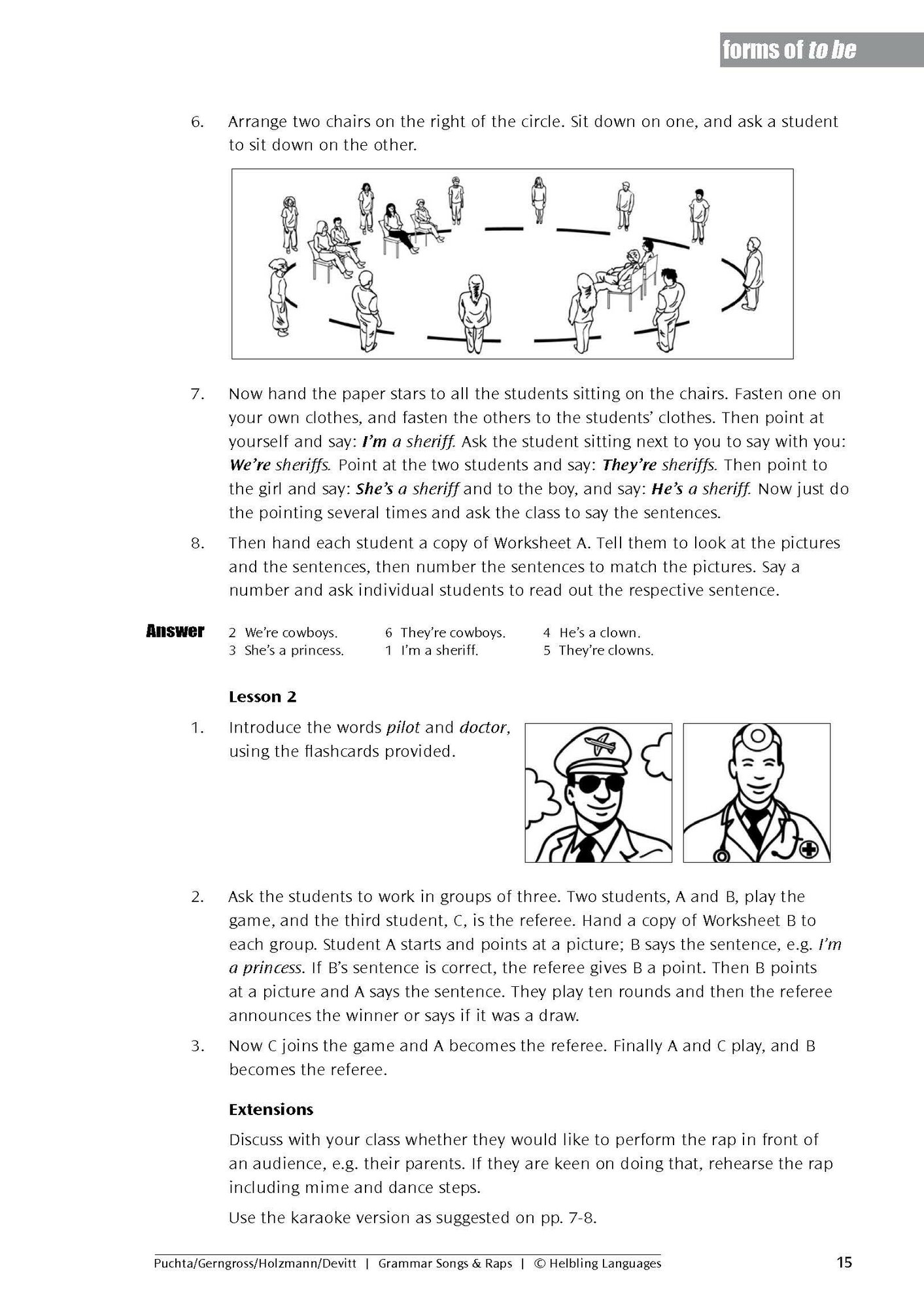 Songs and Grammar Raps for young learners and teens covers key grammar structures for levels A1 and A2. It offers 21 original songs and raps, one per grammar structure, for presenting and practising key grammar structures in fun, dynamic and multi-sensory ways to help students remember the structures better and anchor them in their long-term memory. The book contains photocopiable handouts, and is accompanied by two audio CDs containing all the songs and raps. For each song or rap you will find clear, step-by-step teaching notes, including lead-in activities, listening tasks and game-like follow up activities.